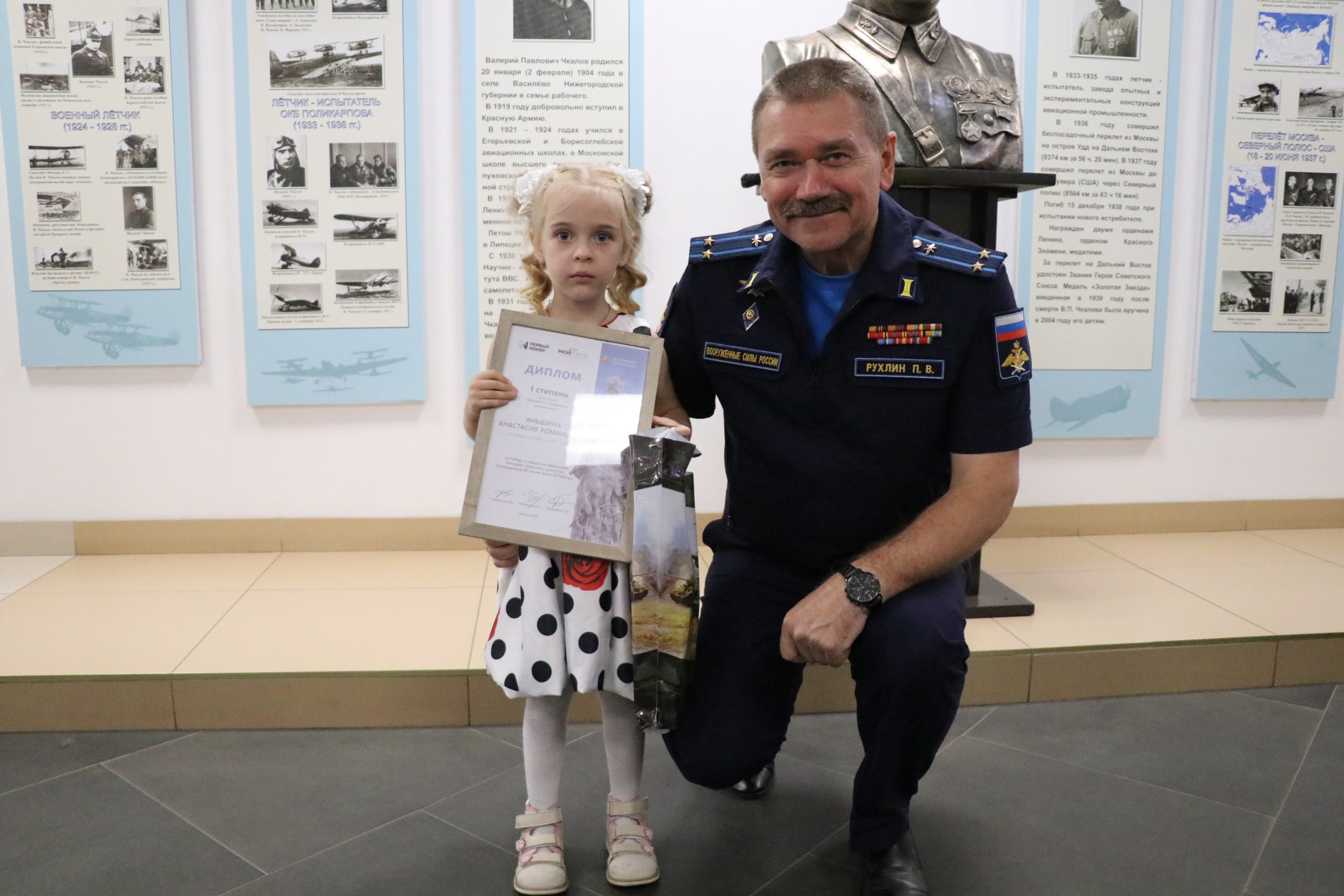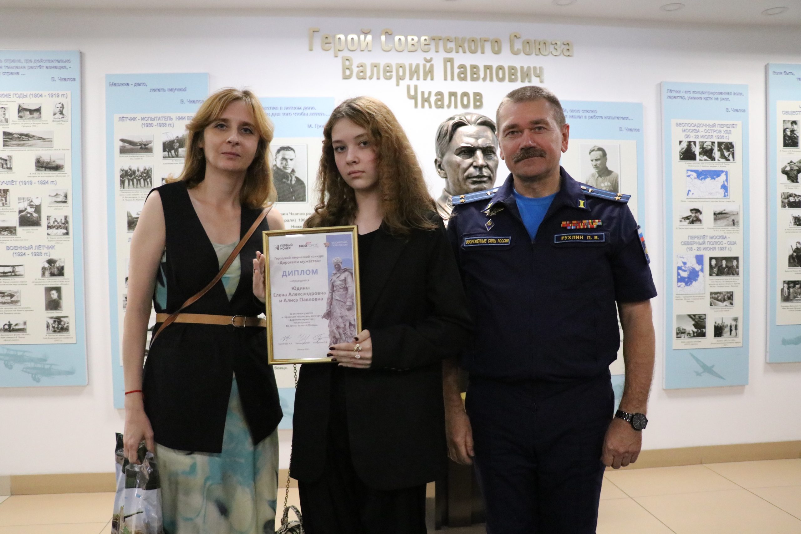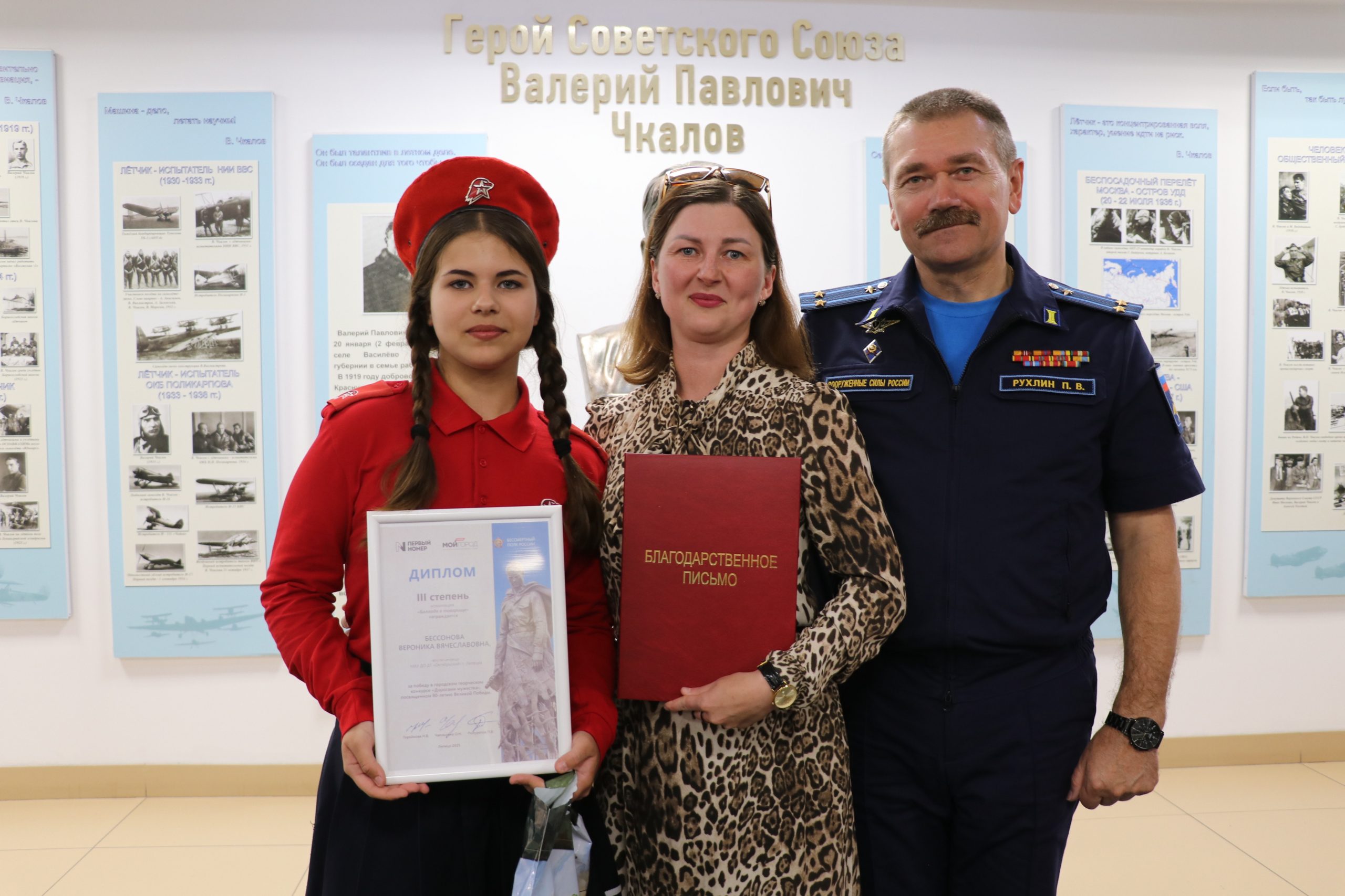 В торжественной церемонии участвовали главный редактор газеты «Первый номер», руководитель исполкома РО ООД «Бессмертный полк России» в Липецкой области Наталья Горяйнова, заместитель главного редактора газеты «Первый номер» Марина Костюк и директор музея Липецкого авиацентра подполковник Павел Рухлин.