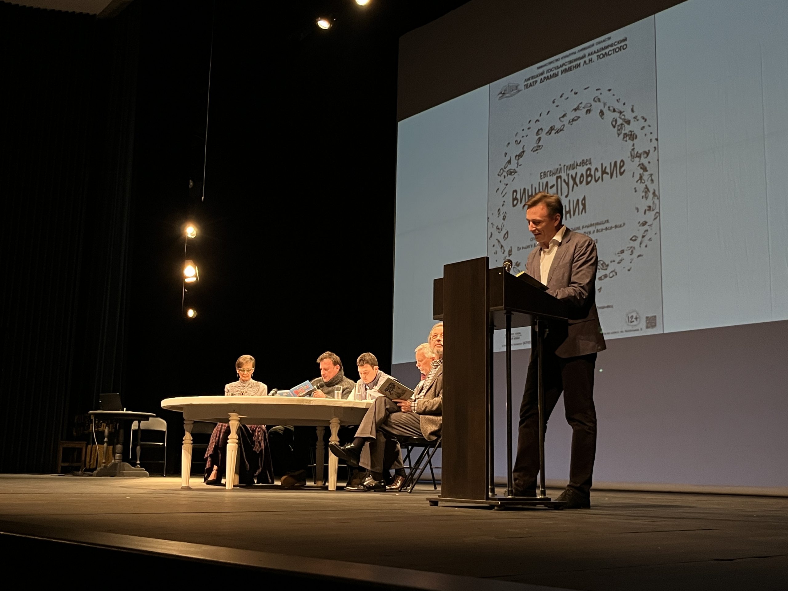 Минувшим вечером в Липецком государственном театре драмы имени Л. Н. Толстого растрогал зрителей до слёз и не смог сдержаться и сам в интервью с журналистами драматург, театральный режиссёр и киноактёр, музыкант, писатель и телеведущий Евгений Гришковец. Дело в том, что на нашей сцене состоялась премьера его пьесы «Винни-Пуховские чтения» 12+, которою он написал в память об ушедшей из жизни в период буйства коронавируса матери… А сегодня Евгений Валерьевич провожает в последний путь отца. То есть на липецкой премьере спектакля по его пьесе он присутствовал накануне такого трагического и очень личного события.