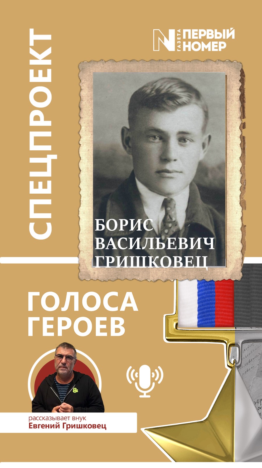 Кроме того, Евгений Валерьевич не отказал «Первому номеру» и принял участие в патриотическом проекте газеты, посвящённом 80-летию Великой Победы и Году Защитника Отечества. Евгений Гришковец рассказал о фронтовой биографии своего дедушки, ветерана и инвалида Великой Отечественной войны Бориса Васильевича Гришковца. Интервью в разделе проекта на нашем сайте.