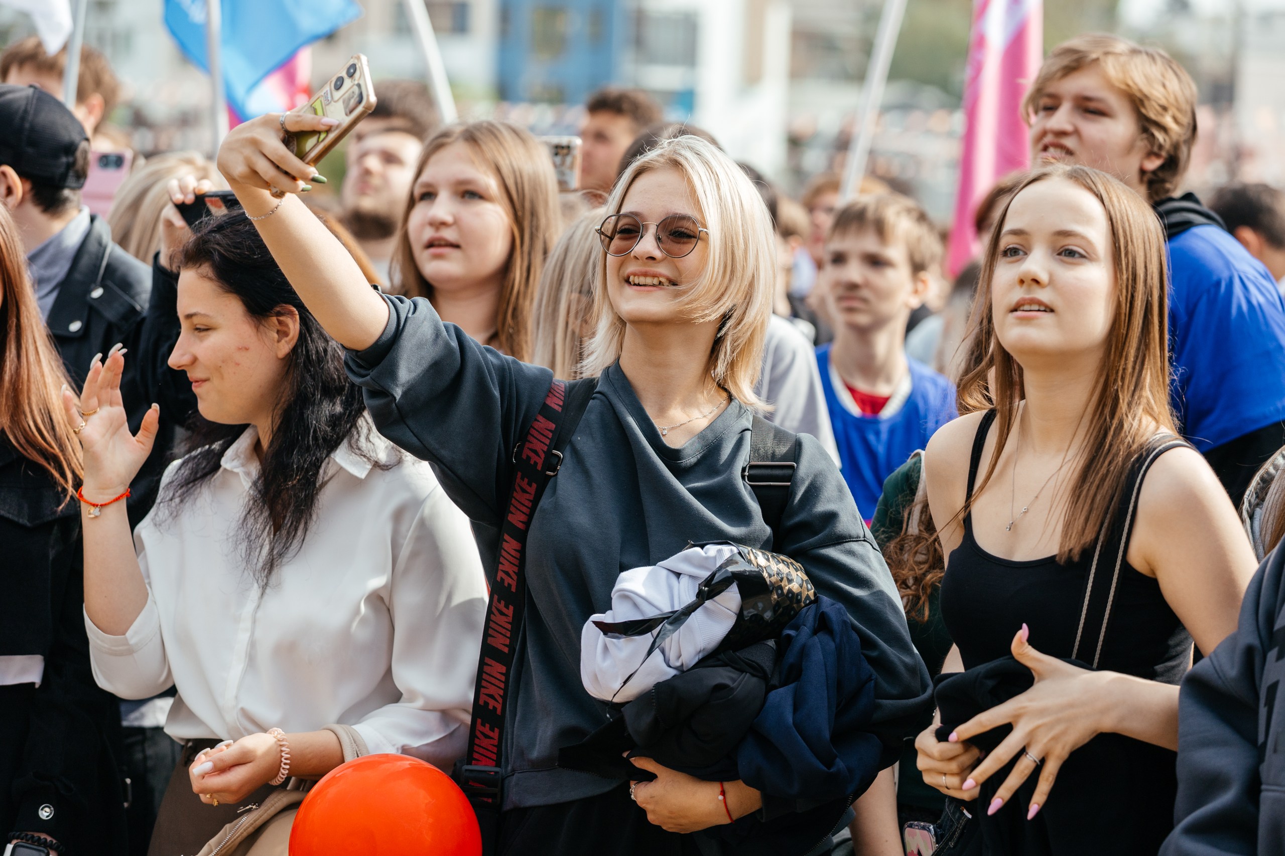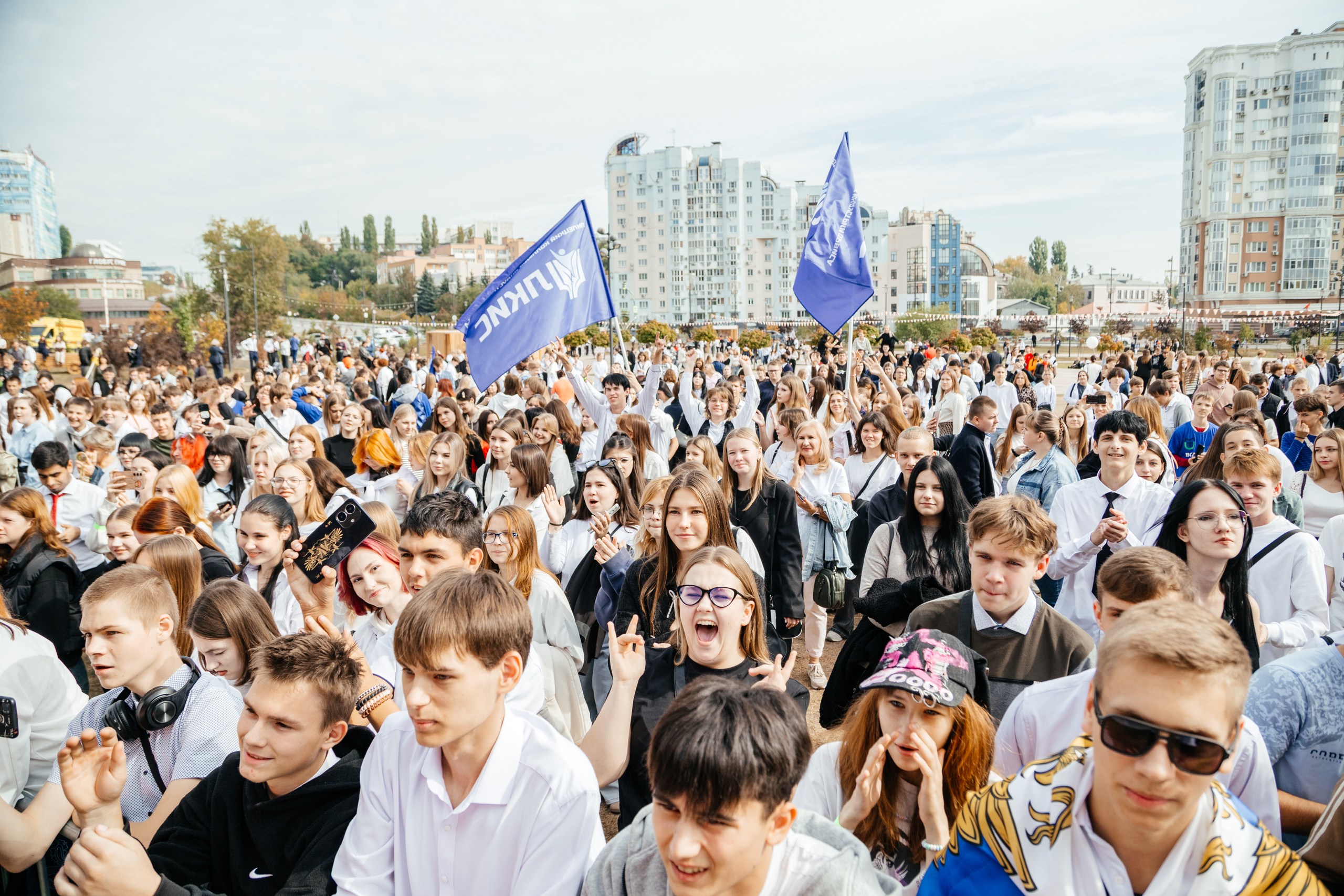 Центр города перекрыт для важного. Автомобилисты не сердятся, а радостно приветствуют идущих. Студенческая река стремительно спускается к Липецкому городищу. Каждая волна — команда колледжа, техникума, вуза. Она несёт энергию задора, молодости, оптимизма. И громко заявляет о себе.