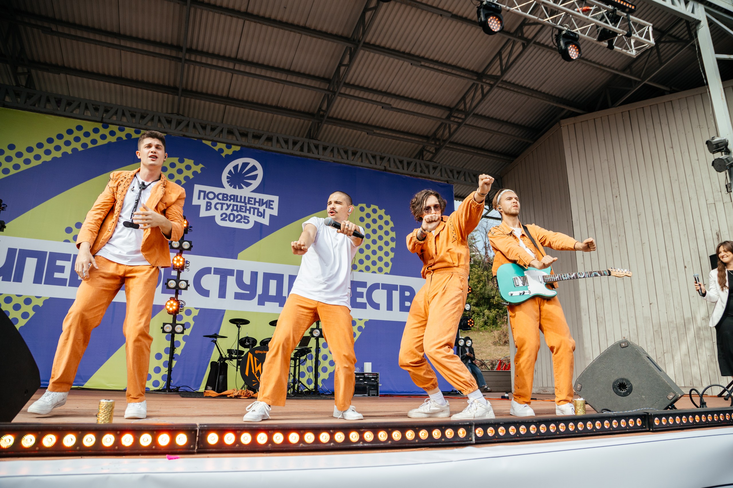 На Городище концерт для первокурсников в самом разгаре. На сцену поднимается сборная команда ссузов и вузов Липецка для исполнения гимна Российской Федерации. Первые ряды активно подпевают.