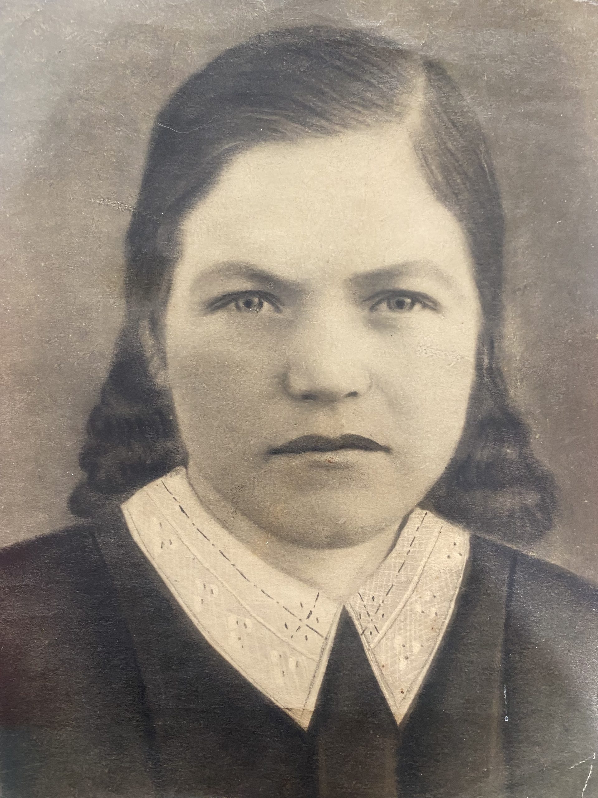 Когда думаю о женщинах войны, работавших в тылу, вспоминаю плакат художника Ираклия Тоидзе «Родина-мать зовёт». Внутри они были такими. А сейчас передо мной довоенная фотография девушки, сделанная в 1939 году. Внимательные, серьёзные глаза, волосы собраны в типичную для тех лет причёску, строгий рот. Скромное платье с белым воротничком ещё больше подчёркивает строгость и чистоту. Это Прасковья Андреевна Смагина. На фото ей 20 лет.