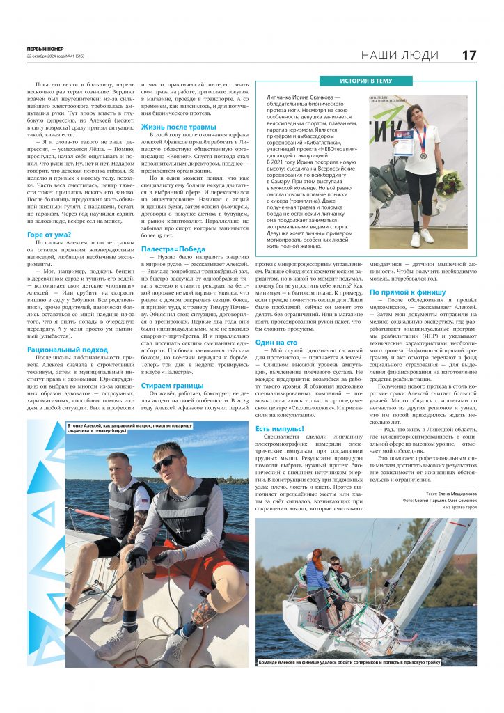 В номере №41 от 22 октября 2024 на 16-17 страницах вышел материал о липчанине с бионическим протезом Алексее Афанасове.