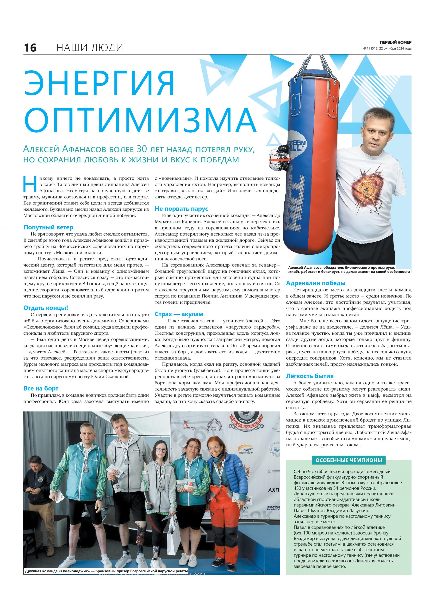 В номере №41 от 22 октября 2024 на 16-17 страницах вышел материал о липчанине с бионическим протезом Алексее Афанасове.