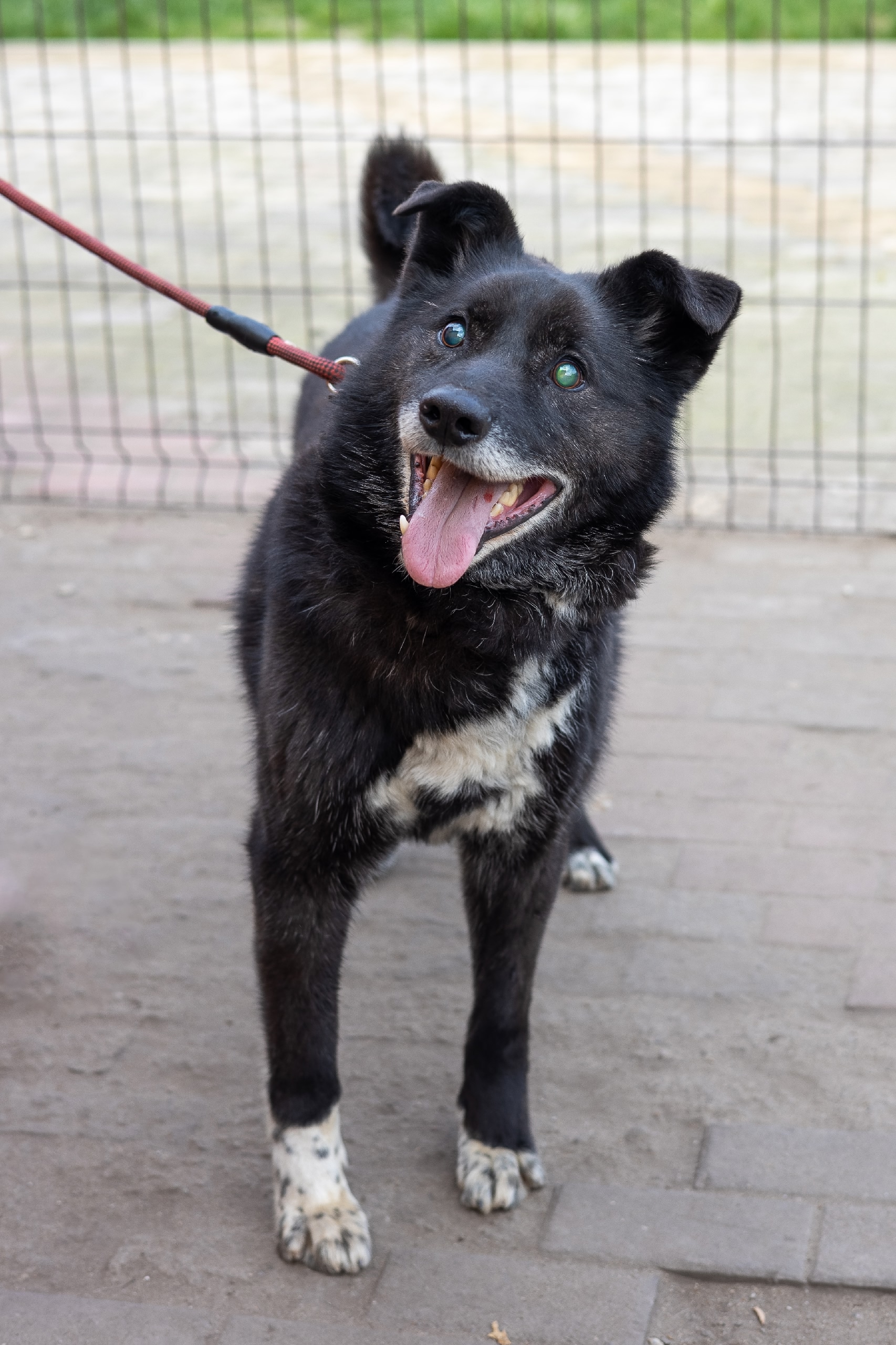 Особая история: слепой, но активный пёс. Прекрасно ориентируется в пространстве. Будет узнавать вас по голосу, запаху, будет ходить хвостиком, станет преданным другом.