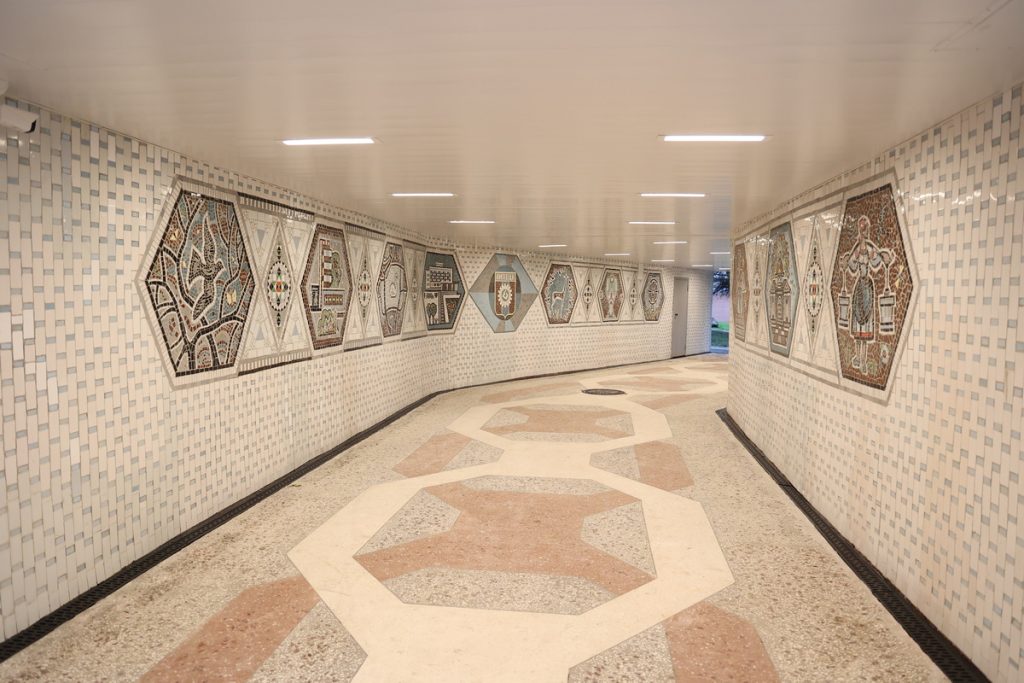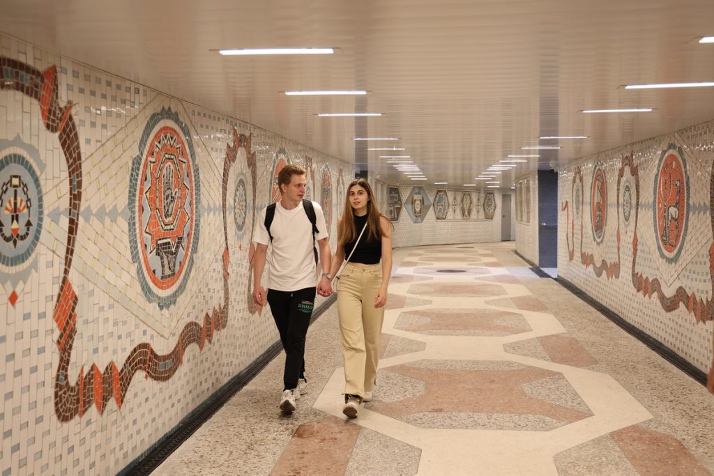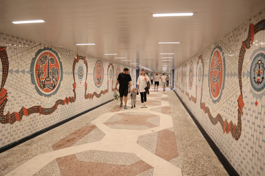 Также здесь восстановили гидроизоляцию, установили новые потолки, заменили гранитные ступени, настелили цветные террасные полы в технике терраццо. Здесь появилась современная система освещения и видеонаблюдения.