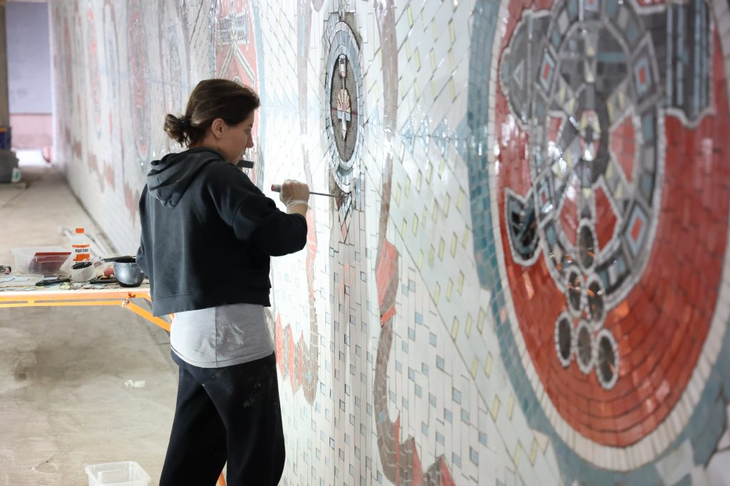 Одной из главных задач было восстановление утраченного мозаичного панно. Для этого пригласили специалистов из Москвы, воссоздали утраченные фрагменты по архивным фотографиям, очистили стены от граффити. Особое внимание уделили сохранению знаменитых изображений — от отпечатков рук Петра I до гербов Липецка разных эпох.