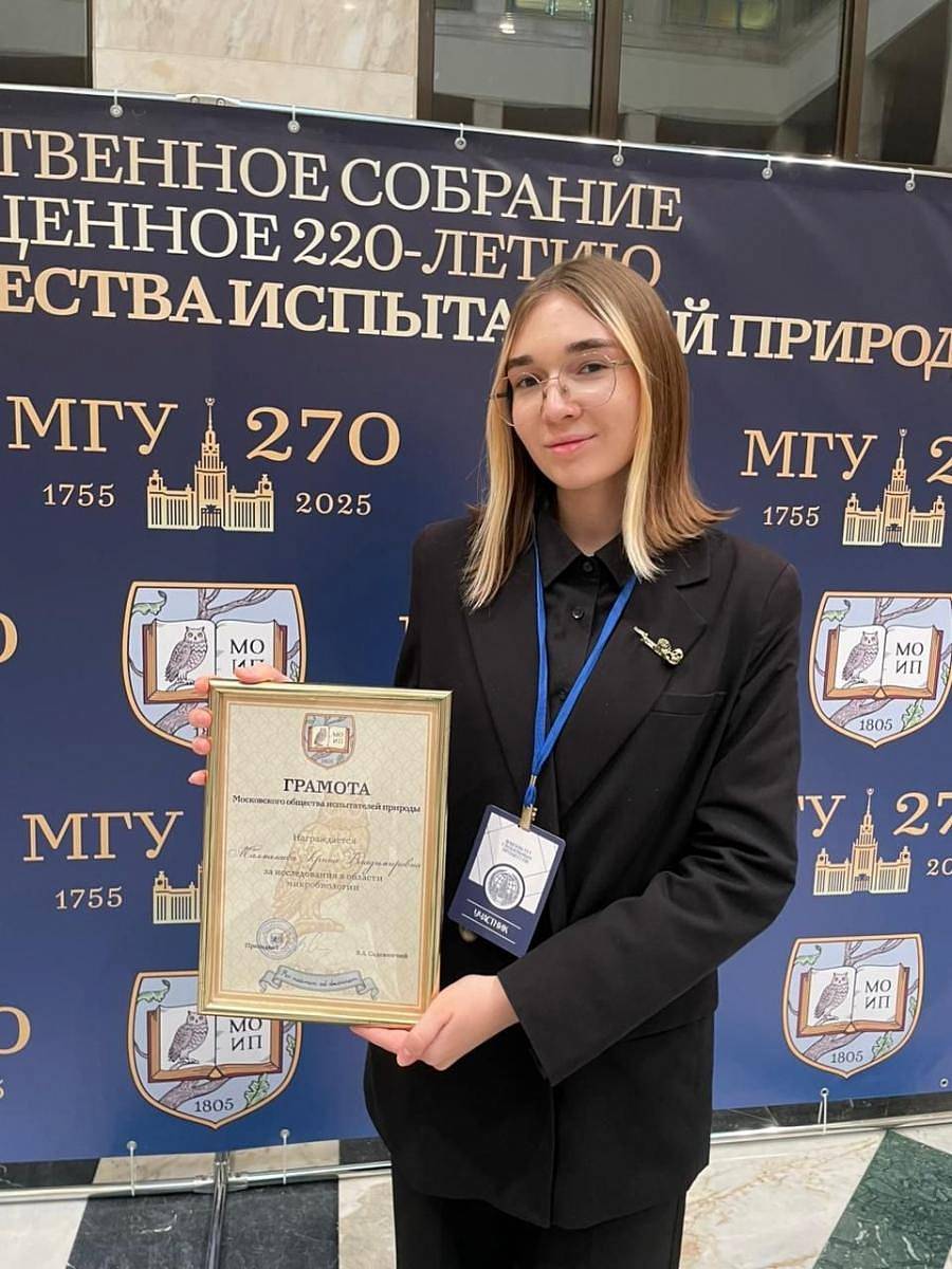 Липчанка Арина Малмалаева получила грамоту, подписанную ректором МГУ Виктором Садовничим. Ещё будучи школьницей — ученицей лицея № 44 — она победила на ХХХII Всероссийских юношеских чтениях имени В. И. Вернадского в секции «Микробиология, клеточная биология и физиология растений». Арина представила результаты исследования микроорганизмов, уточнили в пресс-службе департамента образования города Липецка. Анализ проводился в лицейском научном объединении под руководством педагога Анны Бутовой.