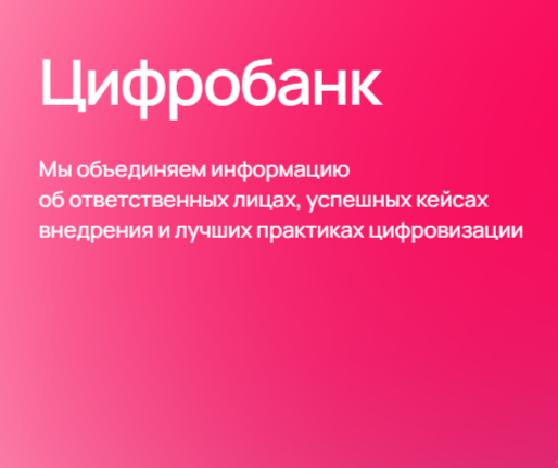 Платформа «Цифробанк» состоит из трёх разделов: «ИТ-продукты», «Цифрогид» и «Технологическое лидерство». Она позволяет собирать, верифицировать и популяризировать кейсы, а также продвигать отечественные решения. На платформе,