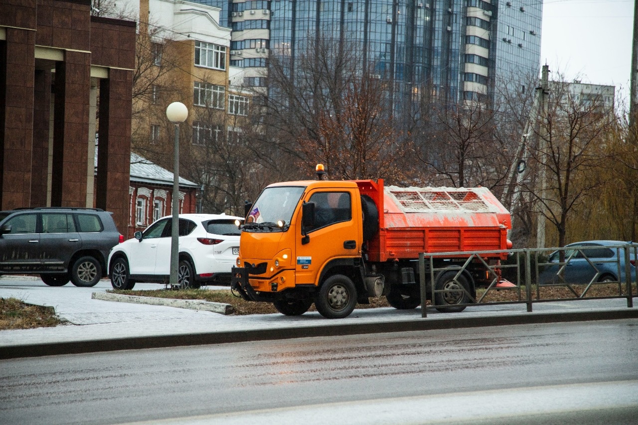 Днём сотрудники управления благоустройства продолжат посыпать автомобильные дороги и пешеходные тротуары Липецка.