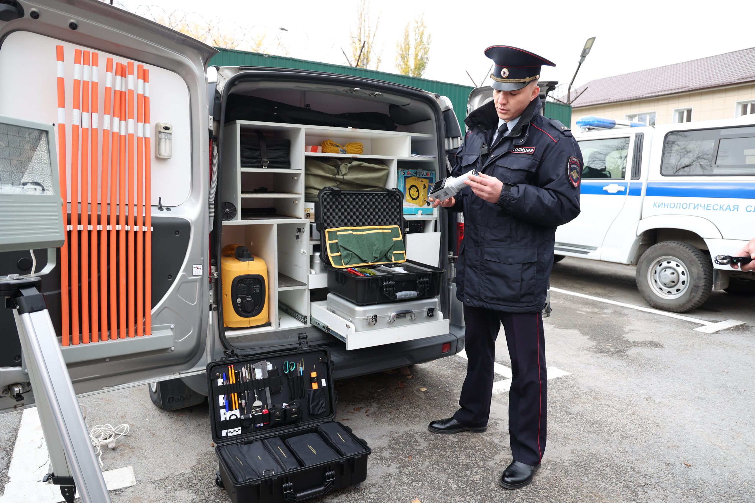 Потом во внутреннем дворе УМВД нам показали передвижную криминалистическую лабораторию на базе автомобиля Fiat. Внутри салона — лаборатория с рабочим местом эксперта-криминалиста, а в задней части кузова есть грузовое отделение с полками и нишами для размещения специального оборудования.