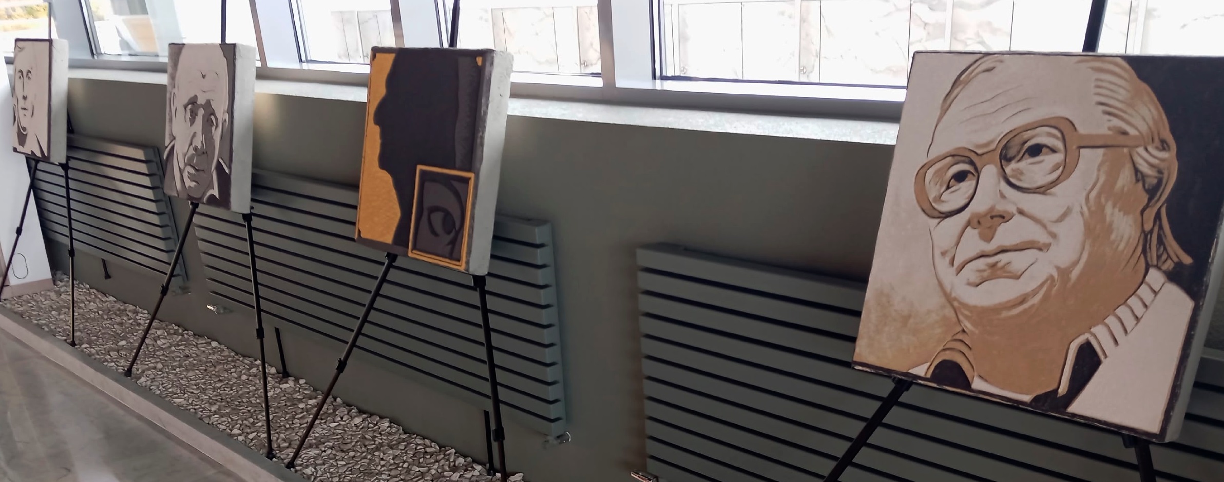 В фойе театра Толстого в конце октября открылась выставка «Мои Петроглифы» (6+) нашего земляка и художника-монументалиста Дениса Губарева. Он представил серию портретов своих учителей, выполненных в технике сграффито.
