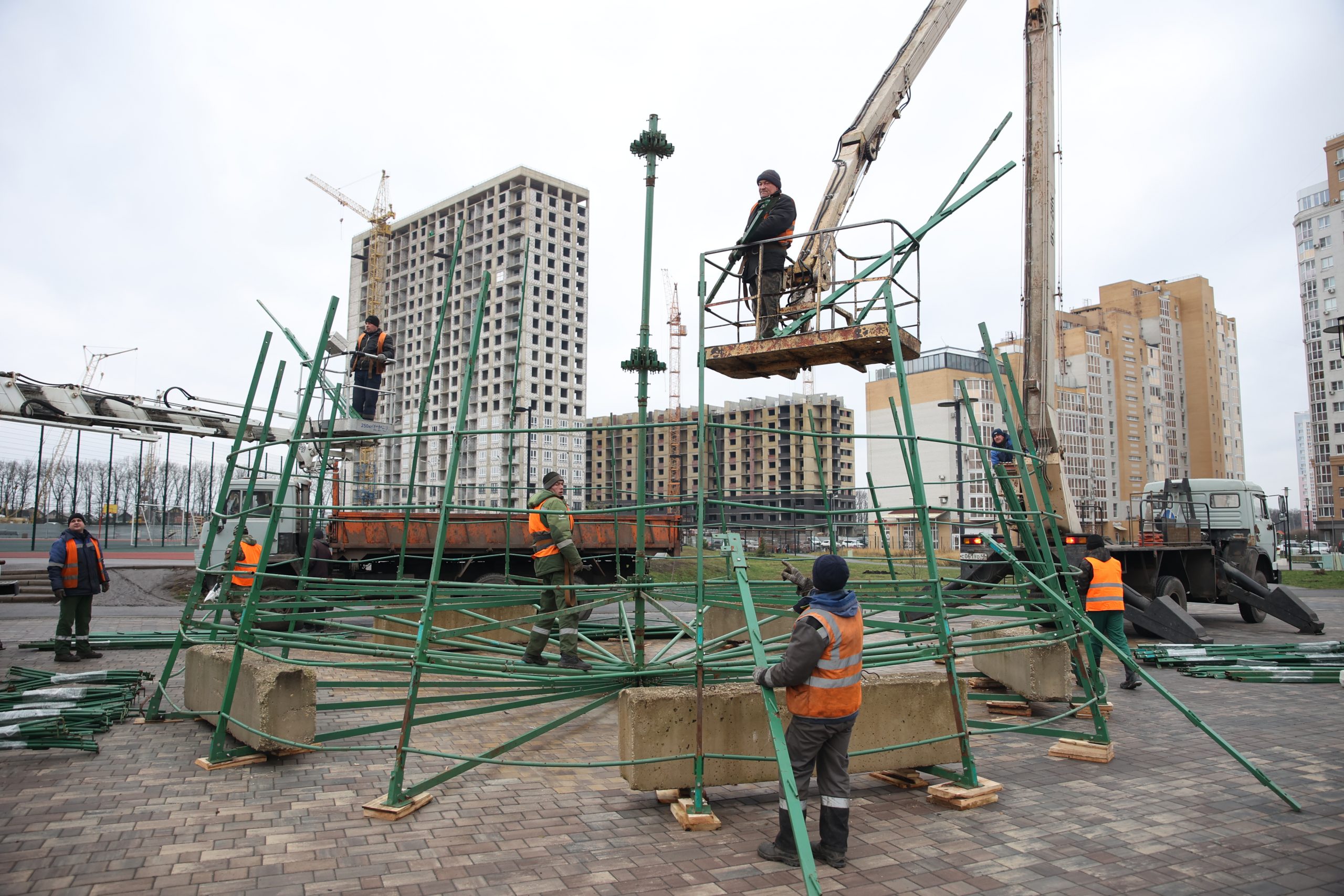 В городе установят 12 больших новогодних ёлок. Этим уже вторую неделю занимается «Зеленхоз». И ещё 37 народных — во дворах и у школ.