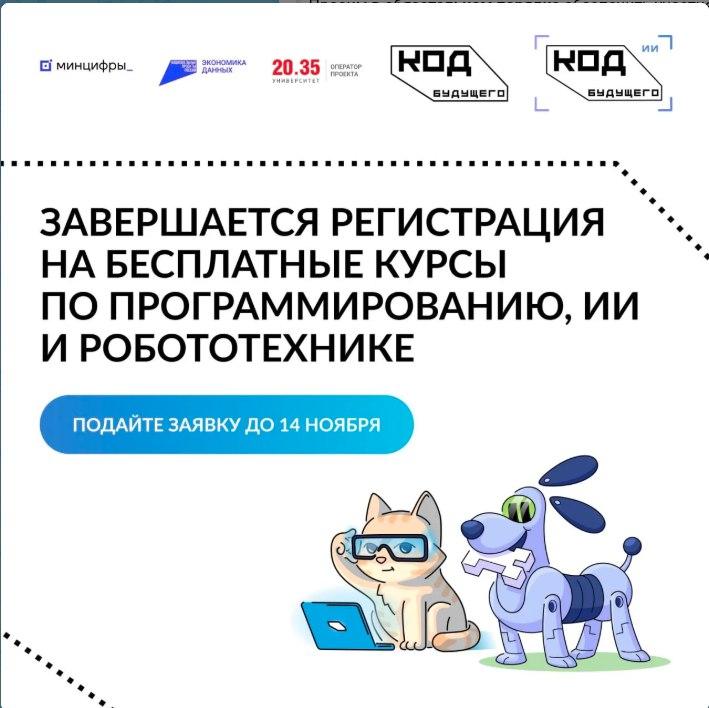 Это бесплатные курсы по программированию, ИИ и робототехнике. Обучение проходит благодаря нацпроекту «Экономика данных».