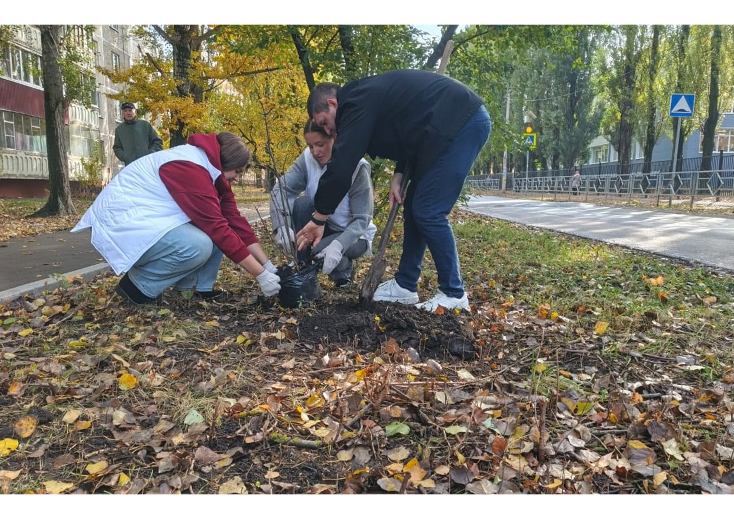 Вместе с волонтёрами и активными жителями посадили кусты сирени после сноса аварийных деревьев.
