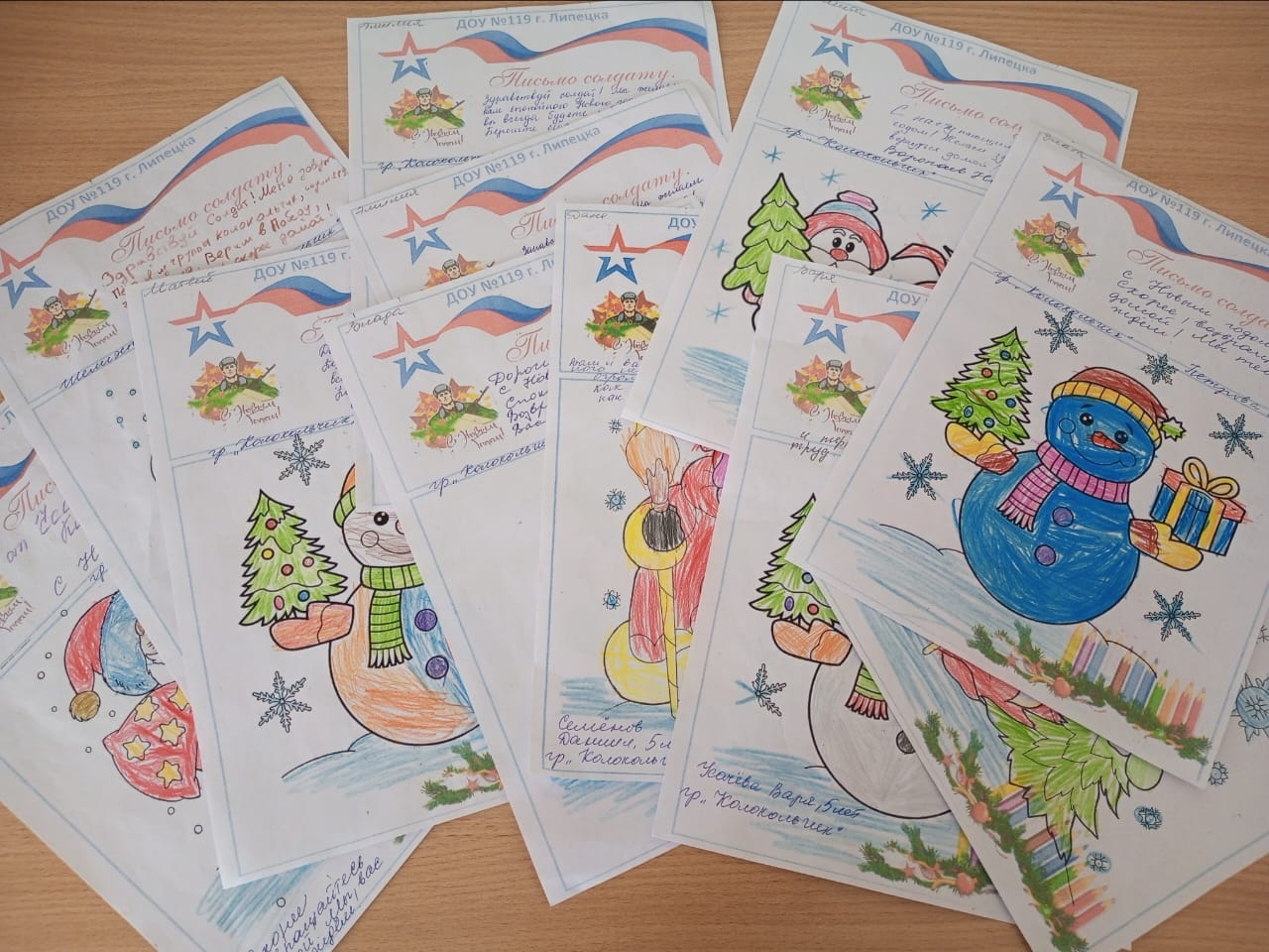 Так, в дополнение к тёплым носкам, быстрорастворимому кофе и сладостям от детского сада № 119 в «командировку» на фронт поехали и детские письма. Суровые с виду бойцы признаются, что новогодние поздравления ребят трогают их до глубины души. Солдаты и офицеры дорожат ими, хранят их и возят с собой даже во время передислокации. Ведь многие из них видят домашних лишь в отпуске.