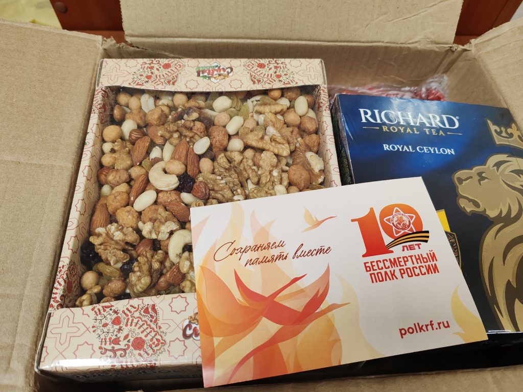 Ещё две коробки с вкусностями собрали и передали активисты Липецкого отделения «Бессмертного полка России». Большую посылку с кофе, сгущёнкой и конфетами принёс Евгений Власов. Она отправилась с «мамой Верой» к липецким бойцам, что сейчас находятся на Запорожском направлении. Коробку с орехами, сухофруктами и чаем в редакцию доставила Галина Меркулова. Это подарок получили флёровцы под Бахмутом.