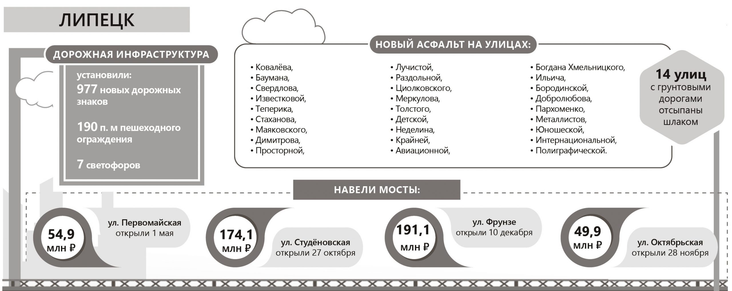 В этом номере мы расскажем о дорогах. Только с 2019 по 2024 год в рамках нацпроекта «Безопасные качественные дороги» в Липецке отремонтировали 149,7 км (142 участка дорог), в области — 1 926 км.