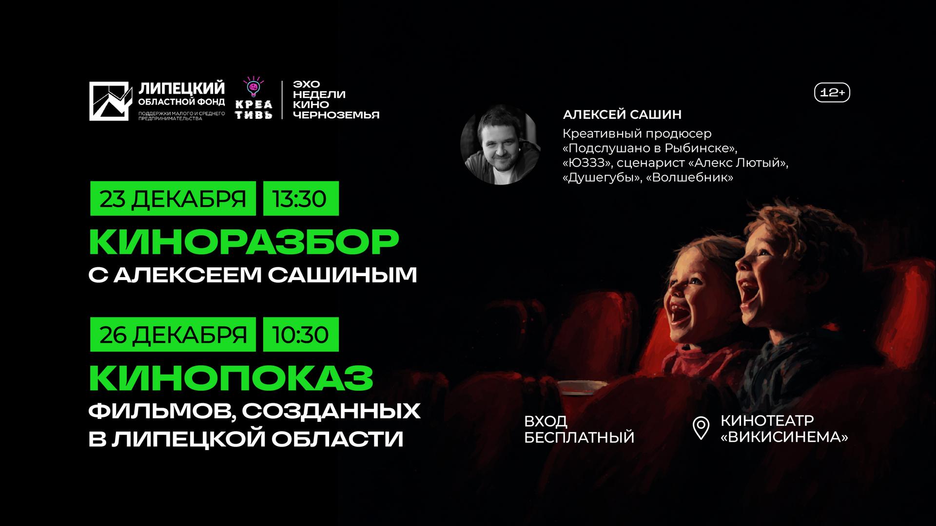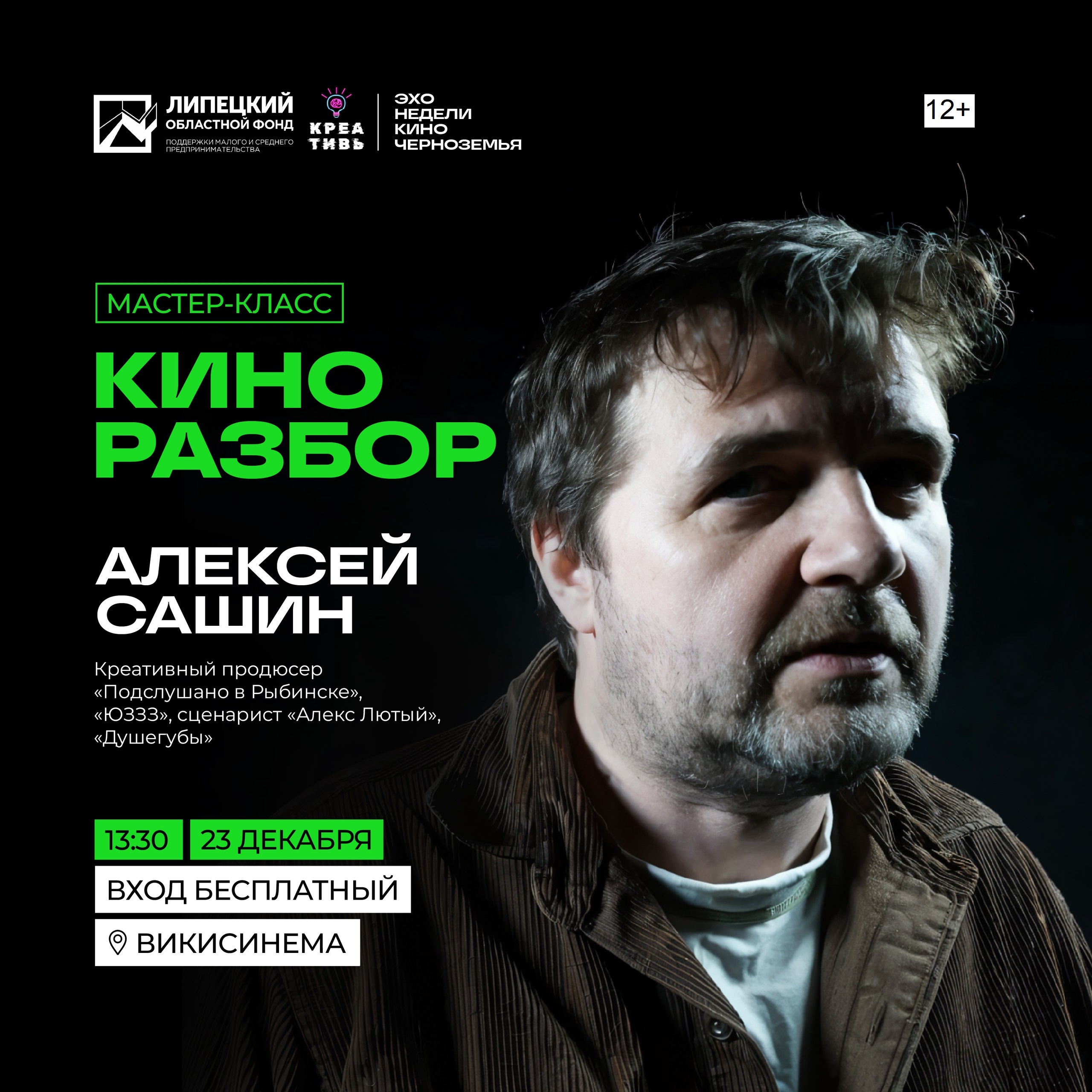 23 декабря в 13:30 состоится мастер-класс креативного продюсера и сценариста, участвовавшего в создании таких известных российских фильмов и сериалов, как «Подслушано в Рыбинске» 18+, «ЮЗЗЗ» 18+, «Кино про бандитов» 18+, «Алекс Лютый» 18+, «Душегубы» 18+, «Волшебник» 16+, Алексея Сашина. Преподаватель Московской школы кино проведёт «киноразбор» работ местных авторов, даст практические рекомендации и расскажет, как снять короткометражный фильм со звёздными актёрами даже при минимальном бюджете.