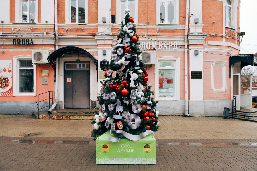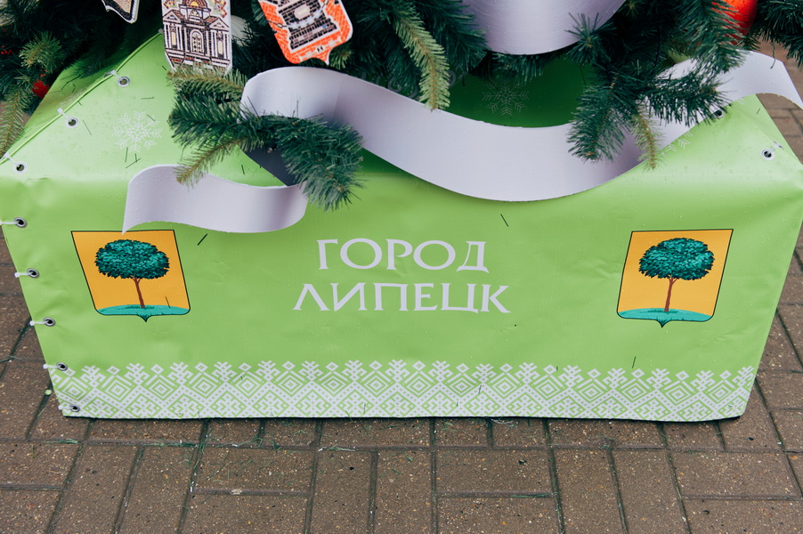 Ёлка, представляющая город Липецк, украшена целым рядом символических игрушек. Здесь и металлические круги, будто только-только отлитые на НЛМК, и узнаваемые фигурки местных памятников — Петра Первого, дамы с собачкой, а ещё мозаичные панно из подземного перехода под Петровским спуском, фигурка самолётика, игрушка в виде беседки с улицы Ленина.