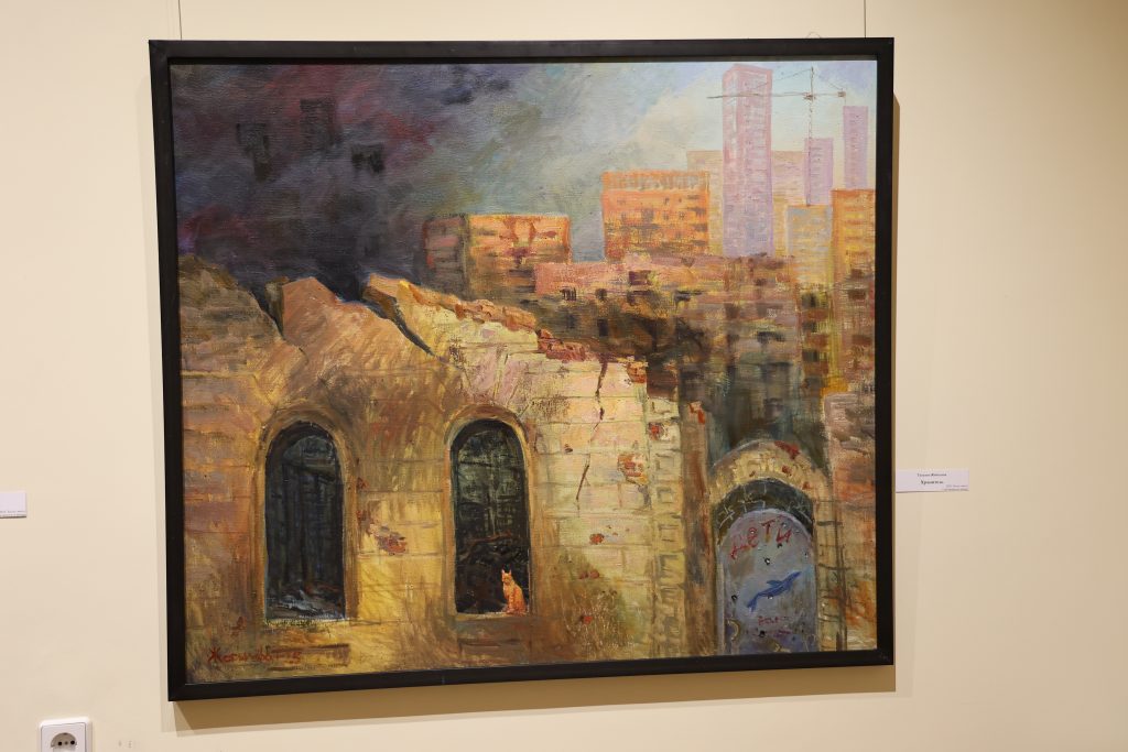 Больше того, его полотна утверждают жажду жизни. Как старинное здание на проспекте Ленина: оно дважды было обращено в руины: и во время Великой Отечественной войны фашистами, и в 2022 году в ходе современных боевых действий.
