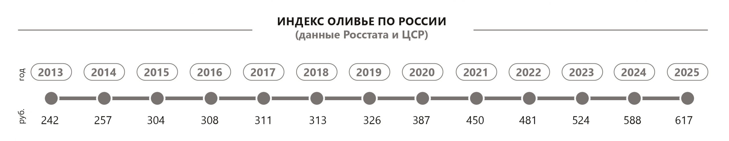 Теперь же Центр стратегических разработок (ЦСР), а до 2023 года Росстат, рассчитывает индекс, используя цены на ингредиенты салата, чтобы наглядно показать инфляцию.
