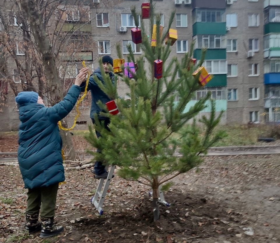 Во дворе домов 16 и 16а на улице Мичурина жители во главе с председателем ТОС Ириной Стуровой и старшей по дому Ириной Юдиной украсили ёлку.