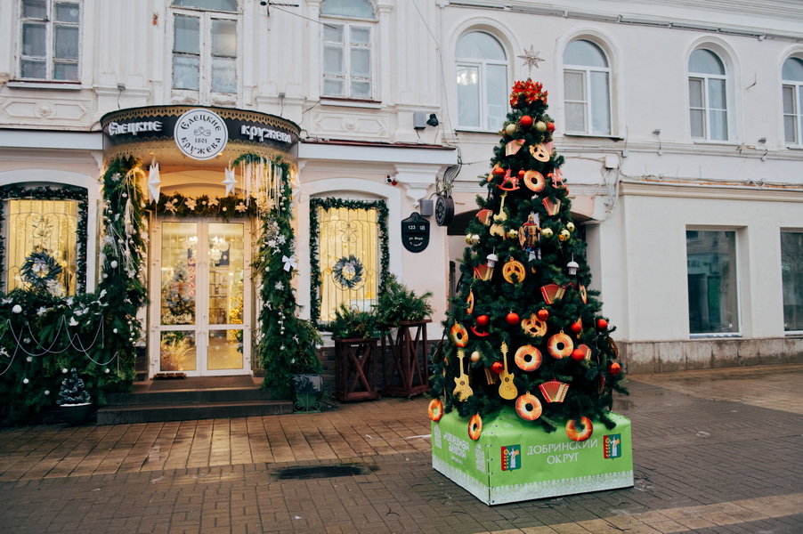 С 12 декабря по 8 января в Ельце пройдёт фестиваль «Ёлки Липецкой земли» 0+. На центральной пешеходной улице древнего города вчера и сегодня устанавливают аллею праздничных деревьев. Всего их будет 20. Каждая ёлка представляет собой один из уголков Липецкой области — муниципальный округ, район или город. Праздничное дерево — это новогоднее лицо своего края, отражающее его историю, местные ремёсла и традиции.