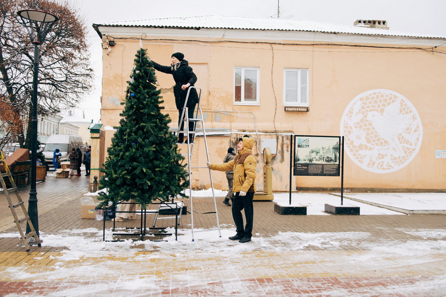 Монтаж ёлок продолжается. Сегодня планируется установка и украшение праздничного дерева, представляющего город Липецк.
