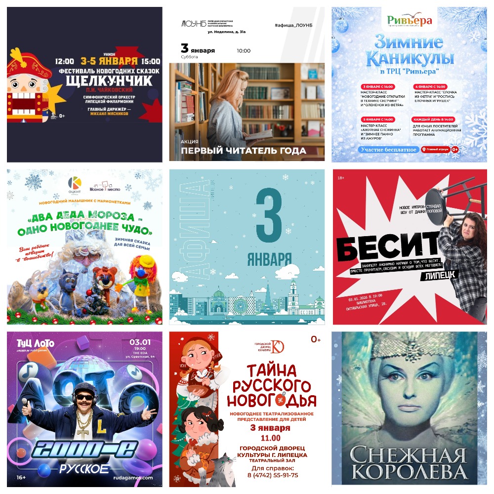 🔸10:00 — акция «Первый читатель» 12+. Бесплатно. Первых посетителей библиотеки ждут приятные сюрпризы: новогодние поздравления и памятные сувениры.