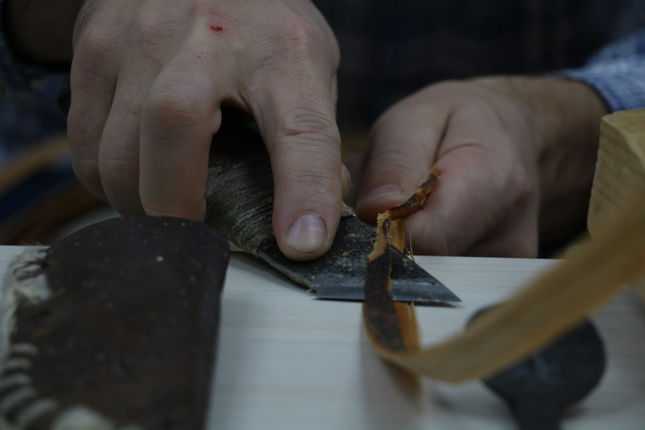 — Она объяснила мне весь процесс плетения в деталях, показала, как весной добывает липовую кору — лыко, научила работать кочедыком — это плоское изогнутое шило, — рассказывает и показывает Владимир.