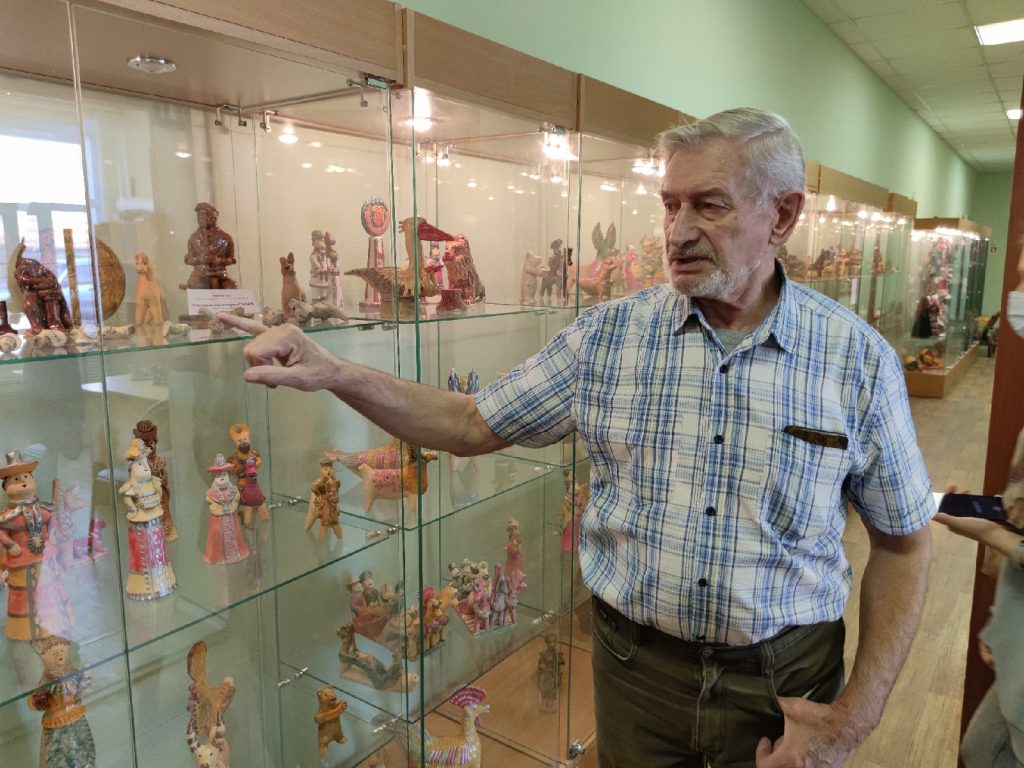 — Раньше здесь находилась земская школа, позже — ветеринарная клиника и парикмахерская. Когда мы получили здание, начали ремонт и достройку дополнительных помещений. В 2011 году отпраздновали новоселье. Здесь нашли призвание мастера, работающие с глиной и текстилем: уже десять лет мы делаем глиняные игрушки и традиционных романовских кукол, — рассказал народный мастер России Виктор Маркин.