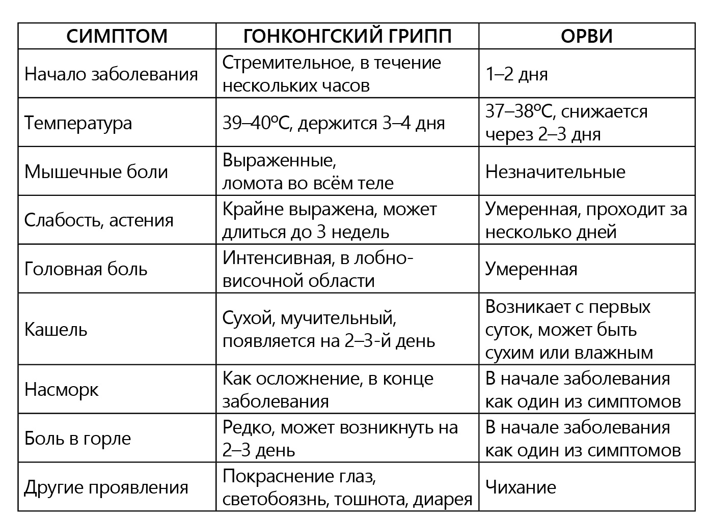 Важно помнить: антибиотики при гриппе неэффективны, их назначают, только если присоединилась бактериальная инфекция. Лечение прописывает врач: он делает это с учётом симптомов и хронических болезней, имеющихся у пациента. При гонконгском гриппе назначают противовирусные препараты. Пациентам с температурой выше 38ºC, а также с болями в мышцах и суставах могут выписать нестероидные противовоспалительные. Сосудосуживающие средства применяют при терапии ринита или синусита. Противокашлевые — для подавления надсадного кашля. Антисептики местного действия уменьшают воспаление и боль в горле, а также защищают слизистые оболочки ротоглотки от вторичного инфицирования бактериями.
