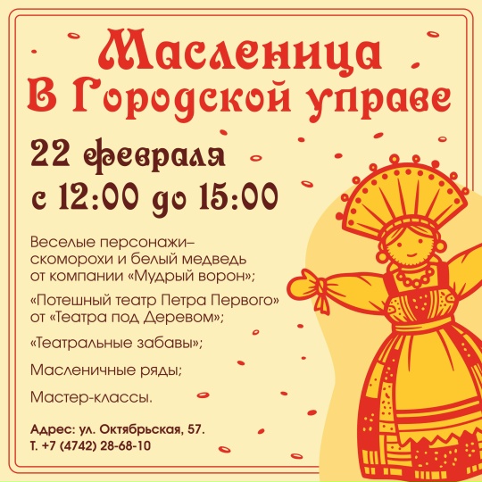 Масленица в «Городской управе» (6+), потешный театр, масленичные ряды, мастер-классы