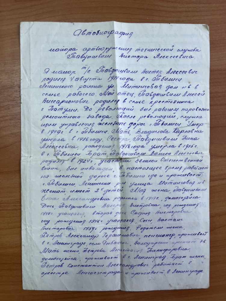 — Самое ценное для меня среди бумаг и снимков — портрет деда в военном кителе с орденами, — говорит Анастасия. — Именно этот портрет мы, многочисленные потомки Виктора Алексеевича Тавдышвили, коих сегодня и не сосчитать, раскиданные по всему бывшему Советскому Союзу, проносим в реке Бессмертного полка как свидетельство о его подвигах. Память о них будет жить, пока есть на земле хотя бы один из рода Виктора Алексеевича Тавдышвили.