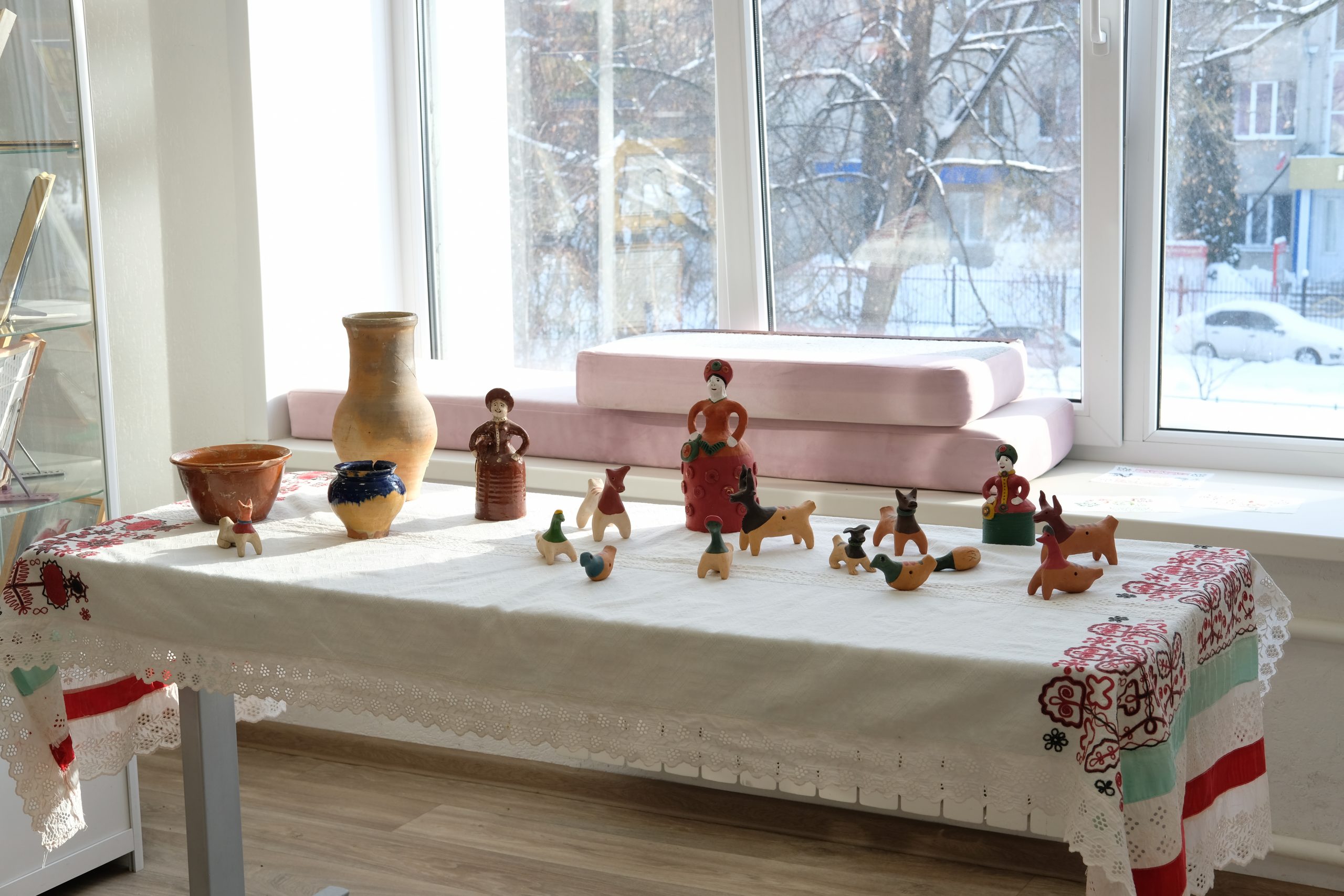 Волшебный мастер-класс неподалёку: из бесформенного кусочка глины даже у учеников-дебютантов выходит вполне себе традиционная добровская игрушка.