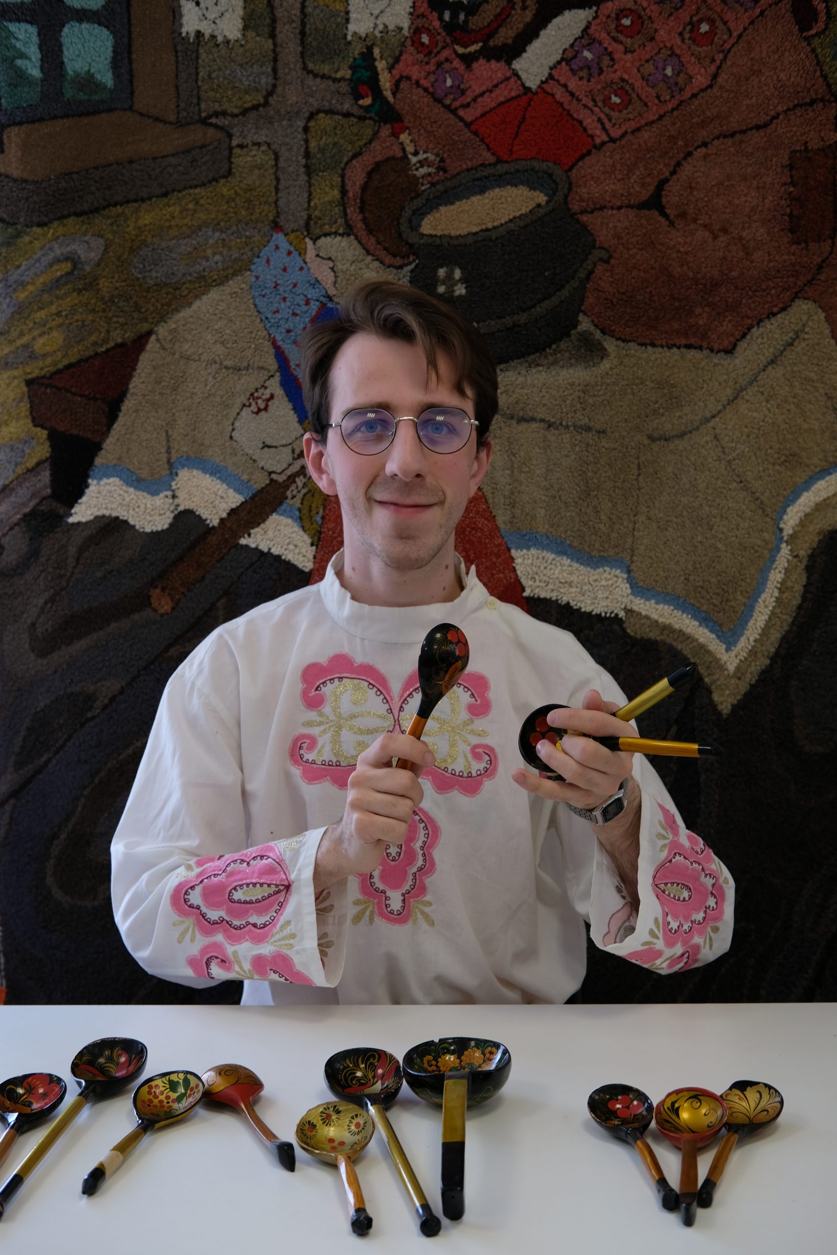 А ныне директор другой библиотеки (Бартеневке на улице Ленина) Никита Алексеев — сегодня снова в Есенинке, в которой трудился раньше. Но сегодня он — и не библиотекарь, и не поэт, а… Ложкарь!