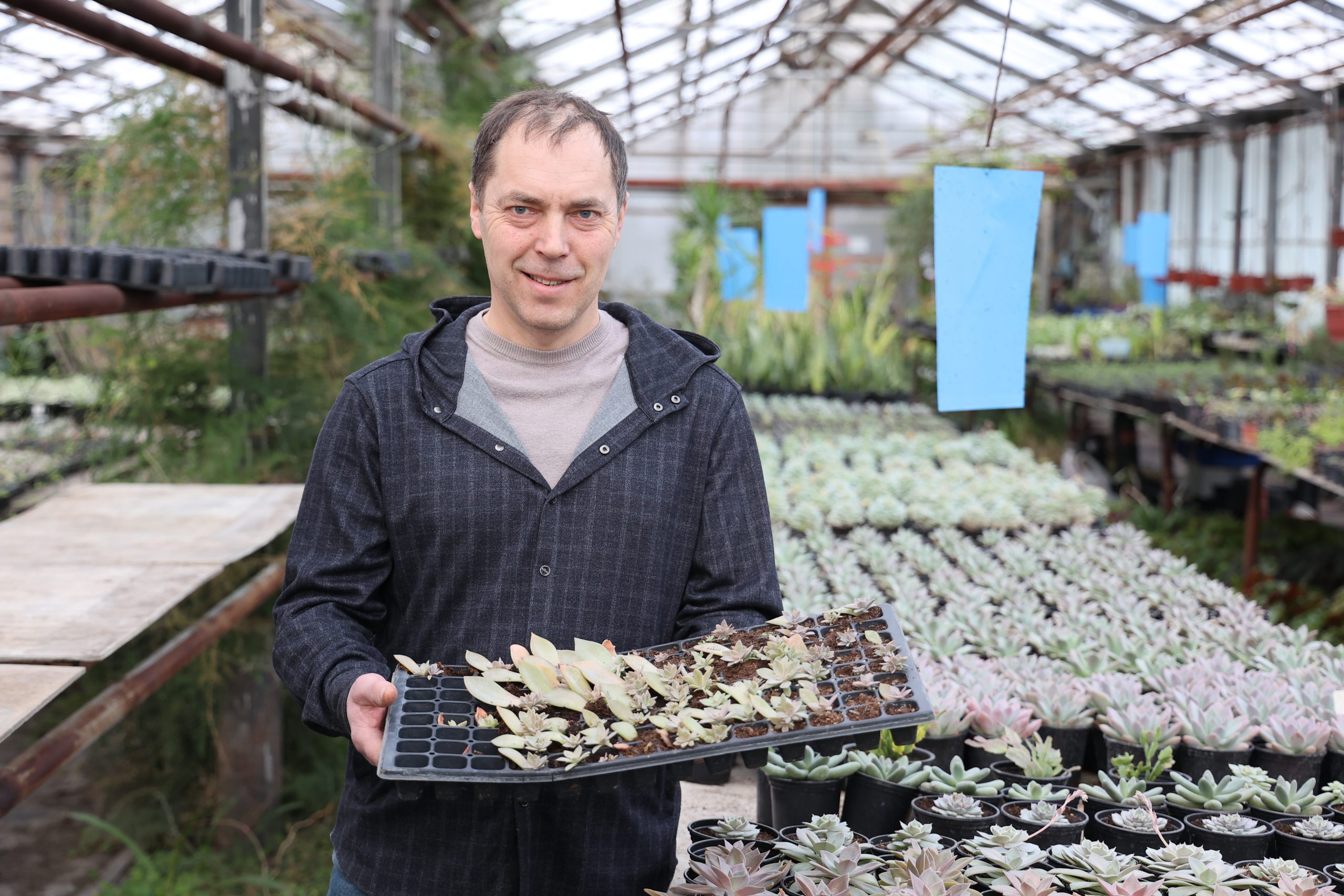 — Самая пора выставлять, иначе стебли вытянутся и будут слабыми, — рассказывает главный агроном АО «Зеленхоз» Алексей Яковлев. — Оттенки самые разные: красные, фиолетовые, розовые, белые, все идут нарасхват. В последние годы большим спросом пользуются жёлтые. Мы и букеты с ними компонуем: добавляем, к примеру, к фиолетовым, получается красиво. Через месяц цветы будут как раз на пике, на бутоне. Обещаю: их хватит всем!