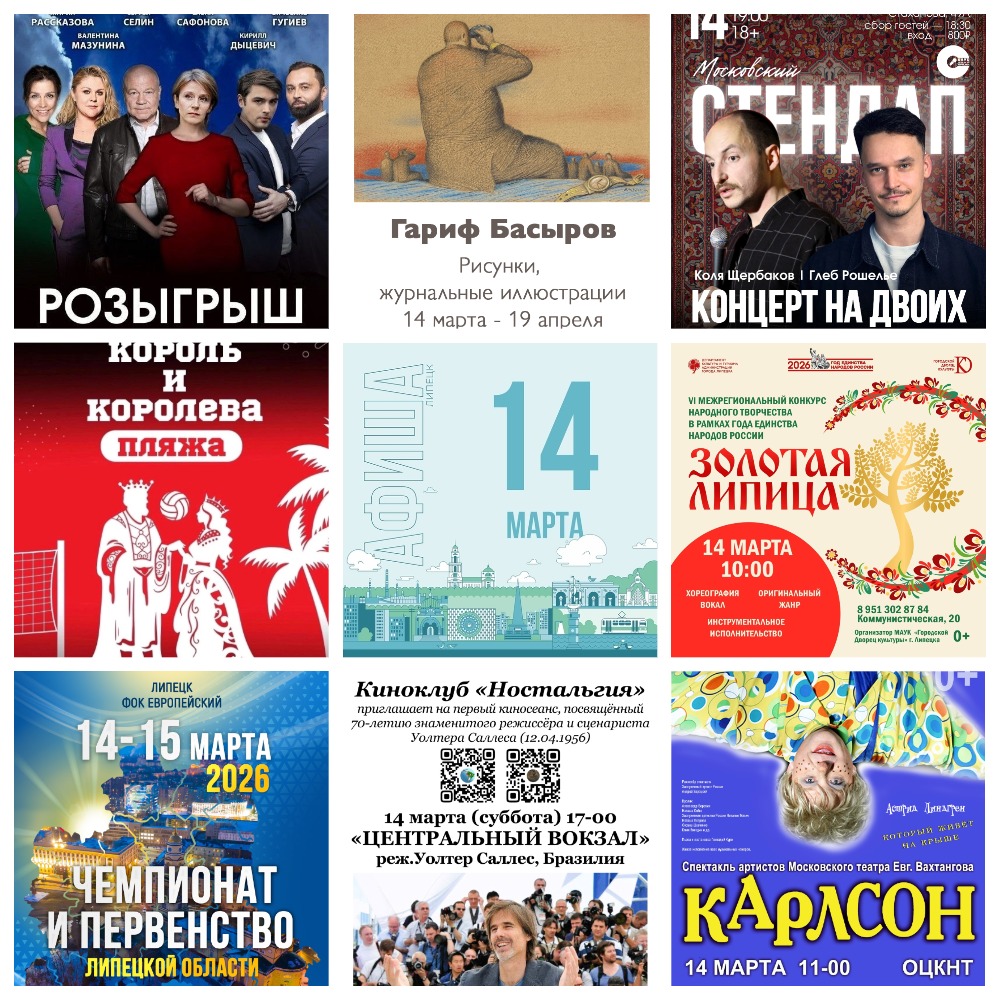 🔸15:00 — открытие выставки Гарифа Басырова «Рисунки, журнальные иллюстрации» 6+ (до 19 апреля).