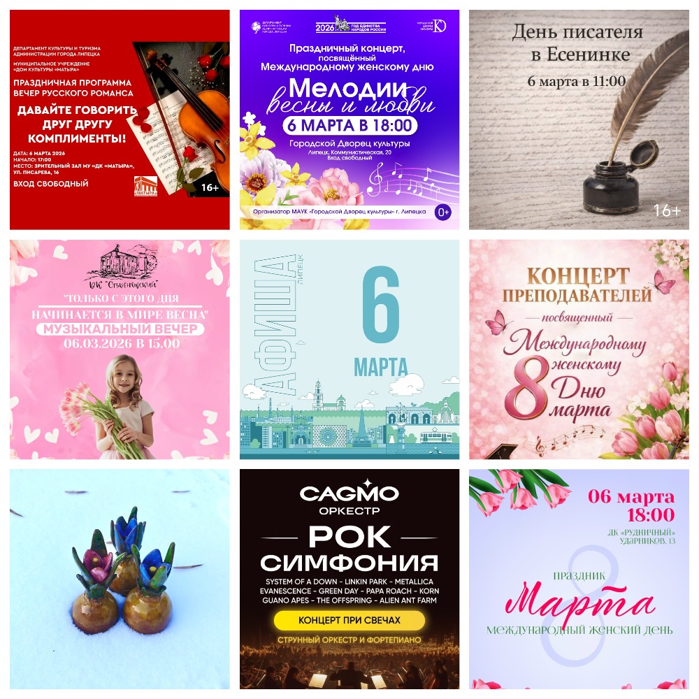 🔹17:30 — праздничный концерт, посвященный Международному женскому дню 0+.