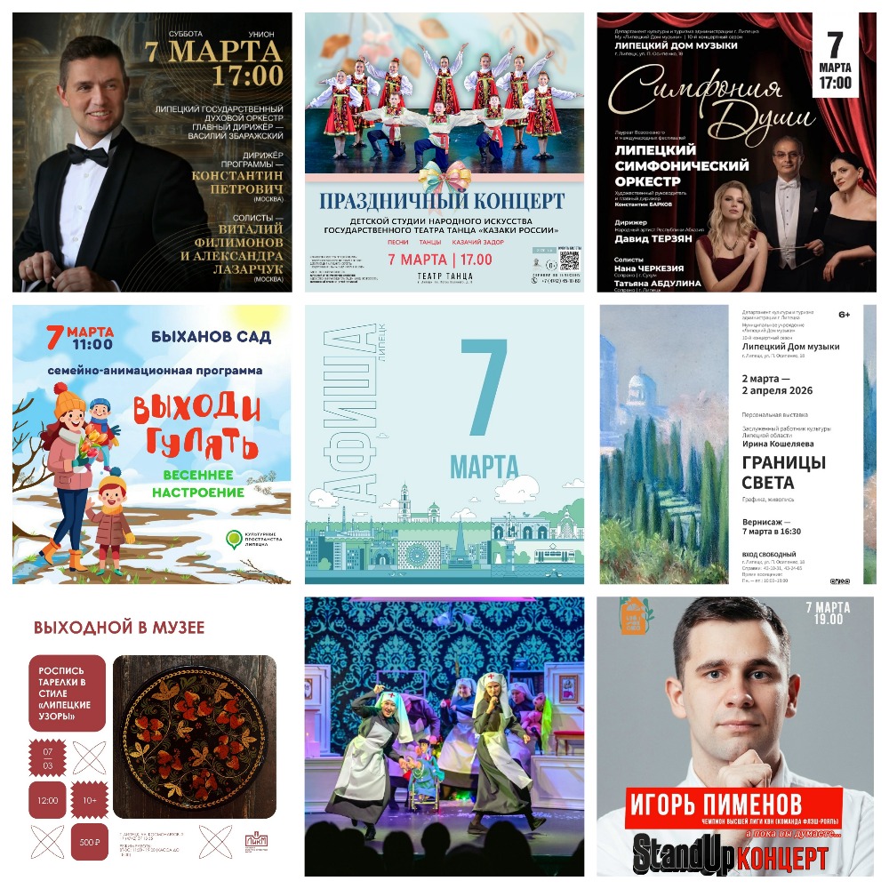 🔸16:00 — праздничный концерт, посвящённый Международному женскому дню 6+.
