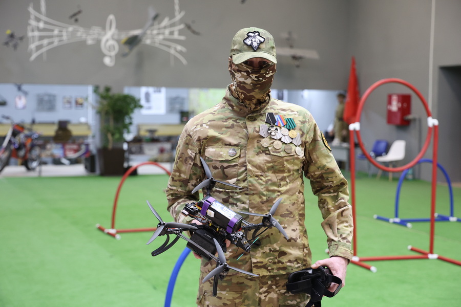 В арсенале инструкторов есть все необходимые для обучения типы беспилотников: их закупило региональное отделение Ассоциации ветеранов СВО. Это и квадрокоптеры-бомбардировщики, и дроны с СВУ (самодельным взрывным устройством) весом до 1 кг. Есть FPV-дроны-камикадзе коптерного (вертолётного) или самолётного типа (с неподвижным крылом) «Молния» и «Привет, 82» (предназначен для поражения некрупной, но критически важной инфраструктуры противника; изначально разрабатывался под перенос и сброс миномётной мины калибра 82 мм, отсюда и получил название. — Прим. авт.).