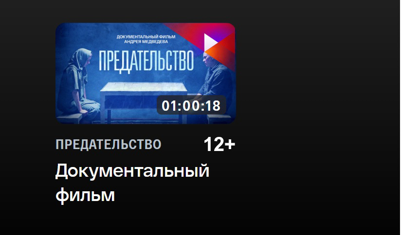А фильм «Предательство» 12+ Андрея Медведева доступен к просмотру на онлайн-платформе.