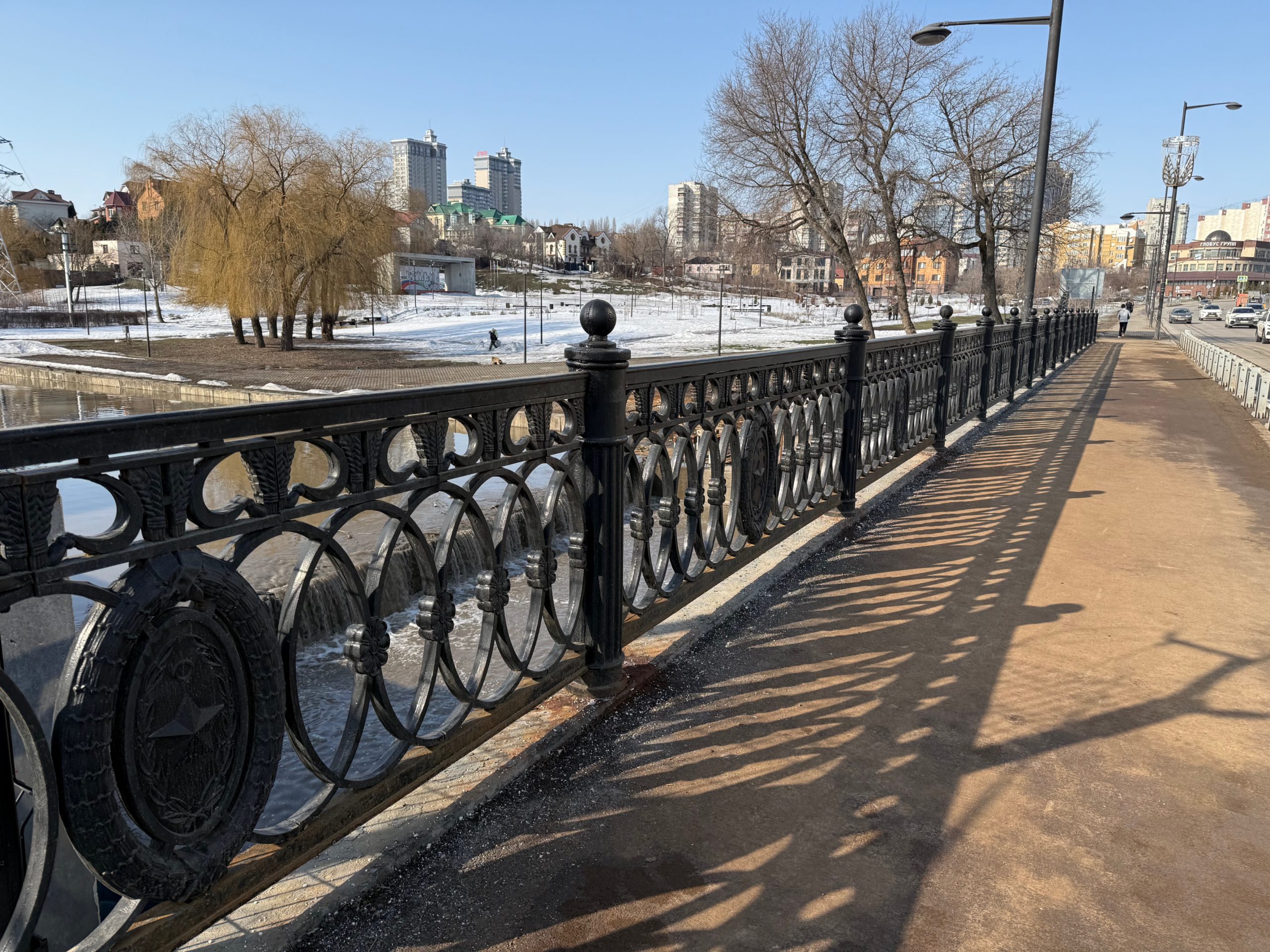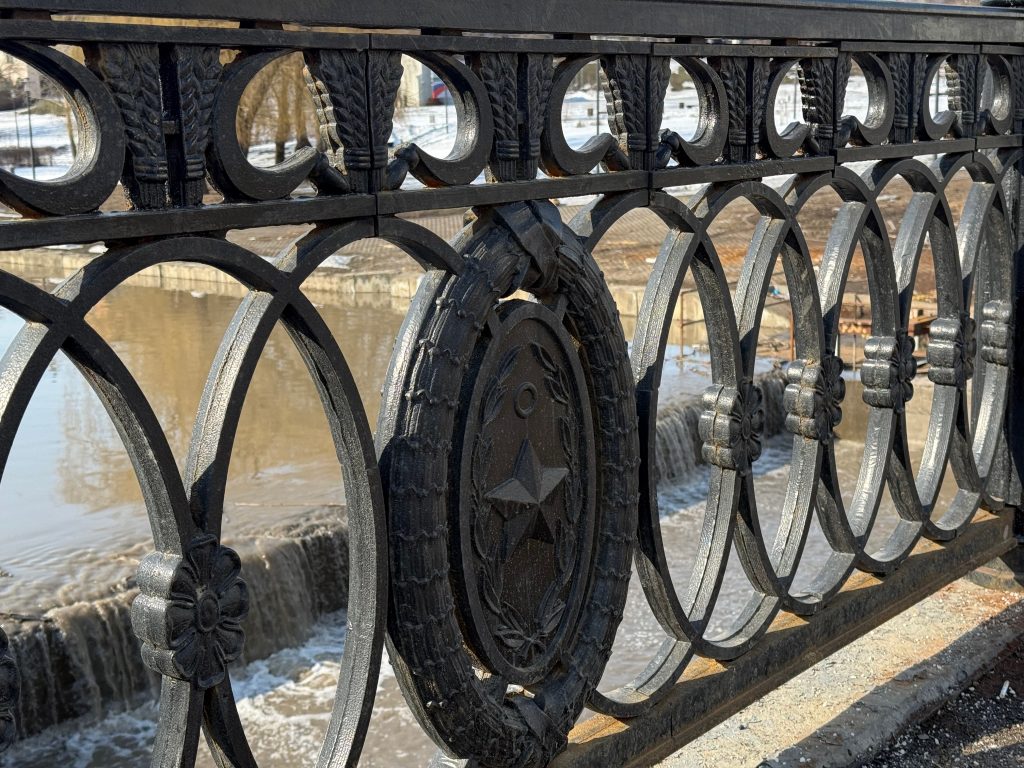 Новое чугунное ограждение установили на мосту, соединяющему улицы Фрунзе и Плехановский спуск в Липецке. Его элементы вручную вылили опытные мастера. Для проведения этих работ по изготовлению и установке чугунных ограждений из городского бюджета потребовалось дополнительно выделить средства. Но оно того стоило: глаз радует.
