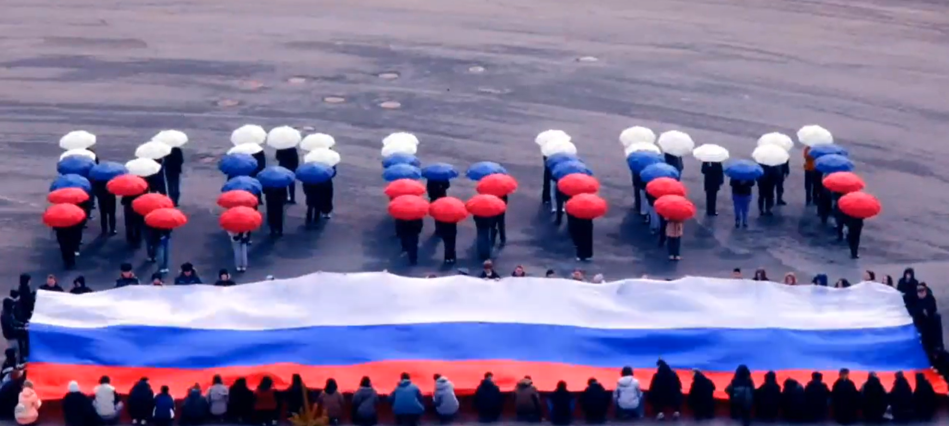 А ещё из зонтиков в цветах триколора волонтёры собрали большое слово «Крым».