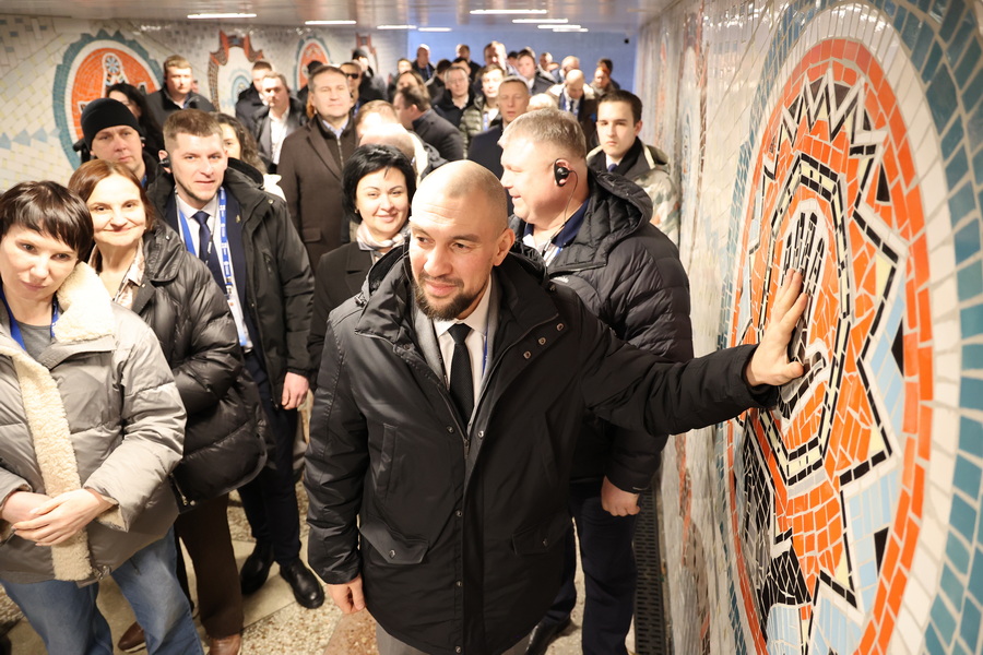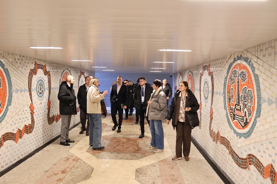 А по пути в парк, в подземном переходе с мозаикой, запечатлевшей этапы истории Липецка, все старались приложить ладонь к отпечатку руки Петра I — целая очередь образовалась!