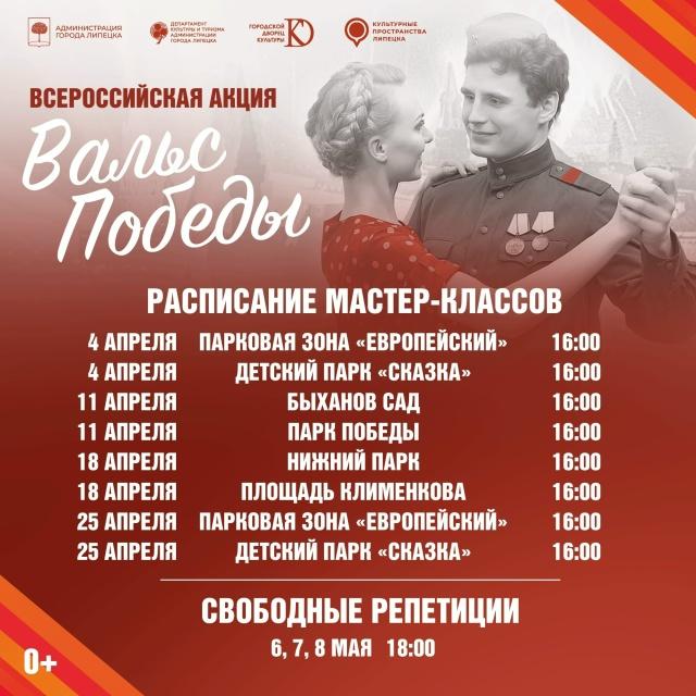 Близится важный дня всех нас праздник Великой Победы. 81-ую годовщину Липецк вновь встретит, кружась в па Всероссийской акции «Вальса Победы». Второй год подряд. С 4 апреля Городской молодежный центр зовёт всех желающих в парки Липецка на открытые репетиции.