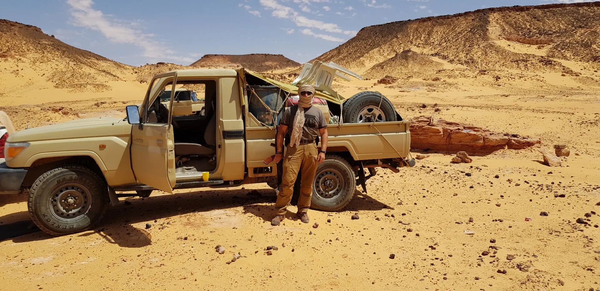 — Из Судана в Ливию по направлению к столице Триполи мы ехали на автомобилях по пустыне больше месяца, — вспоминает Александр Владимирович. — Колонна из пяти пикапов, где также находились местные проводники, неоднократно попадала под вражеские бомбардировки. Для захвата нашей группы отправили более двадцати машин с вооружёнными, хорошо обученными наёмниками. По законам военной тактики и стратегии допустимым считается превосходство противника в три раза. Здесь лимит был, как говорится, значительно превышен. Но нам постоянно удавалось ускользать, не снижая темп.