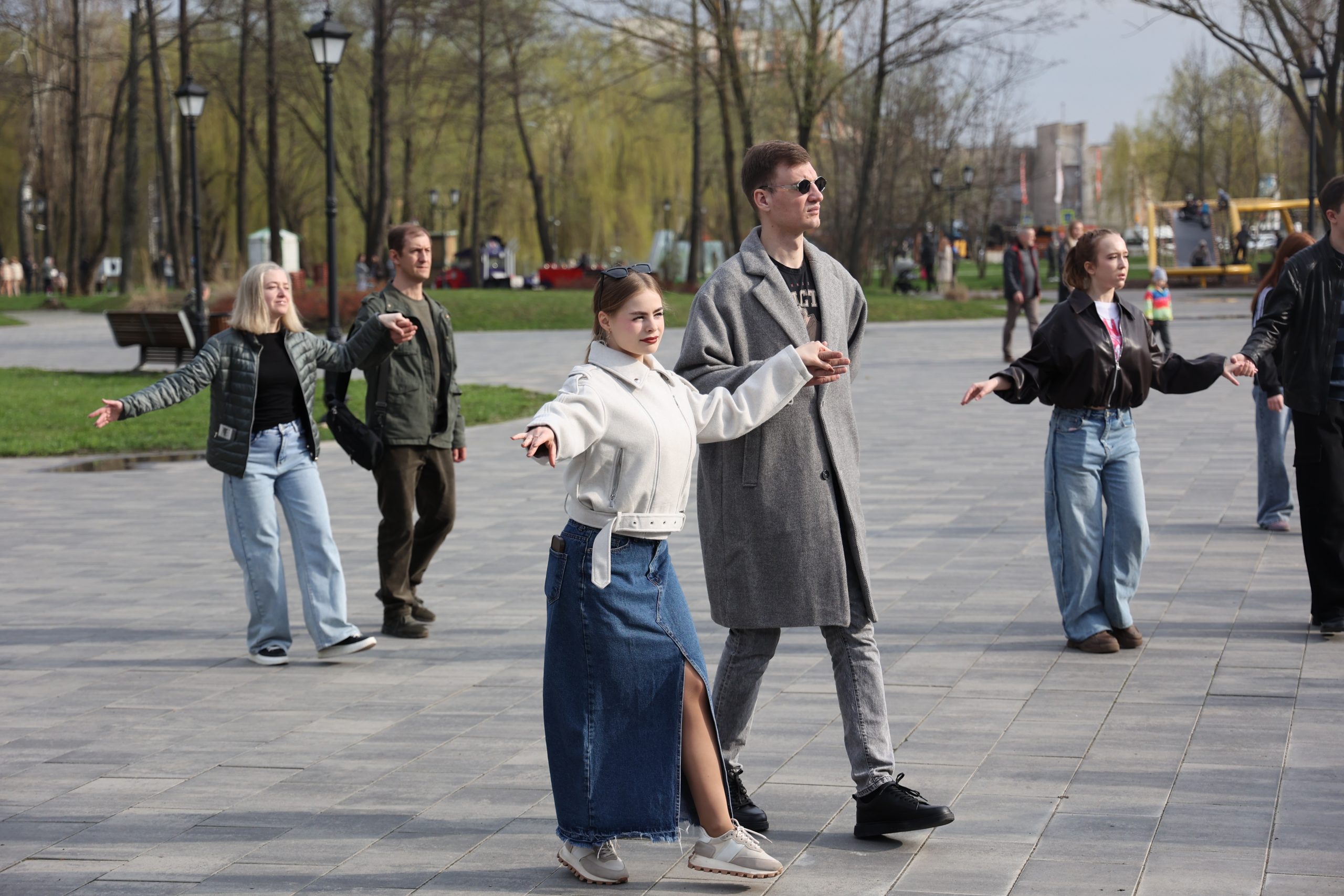 В Нижнем парке собрались человек 70. Пришли ребята из 27-й школы, что находится в шаговой близости от парка. Другие постарше — уже студенты. К танцу присоединяются взрослые семейные пары. Ближе к сцене мама с юным кавалером — сынишкой, ещё малышом, но с большим любопытством старающимся повторять взрослые па.