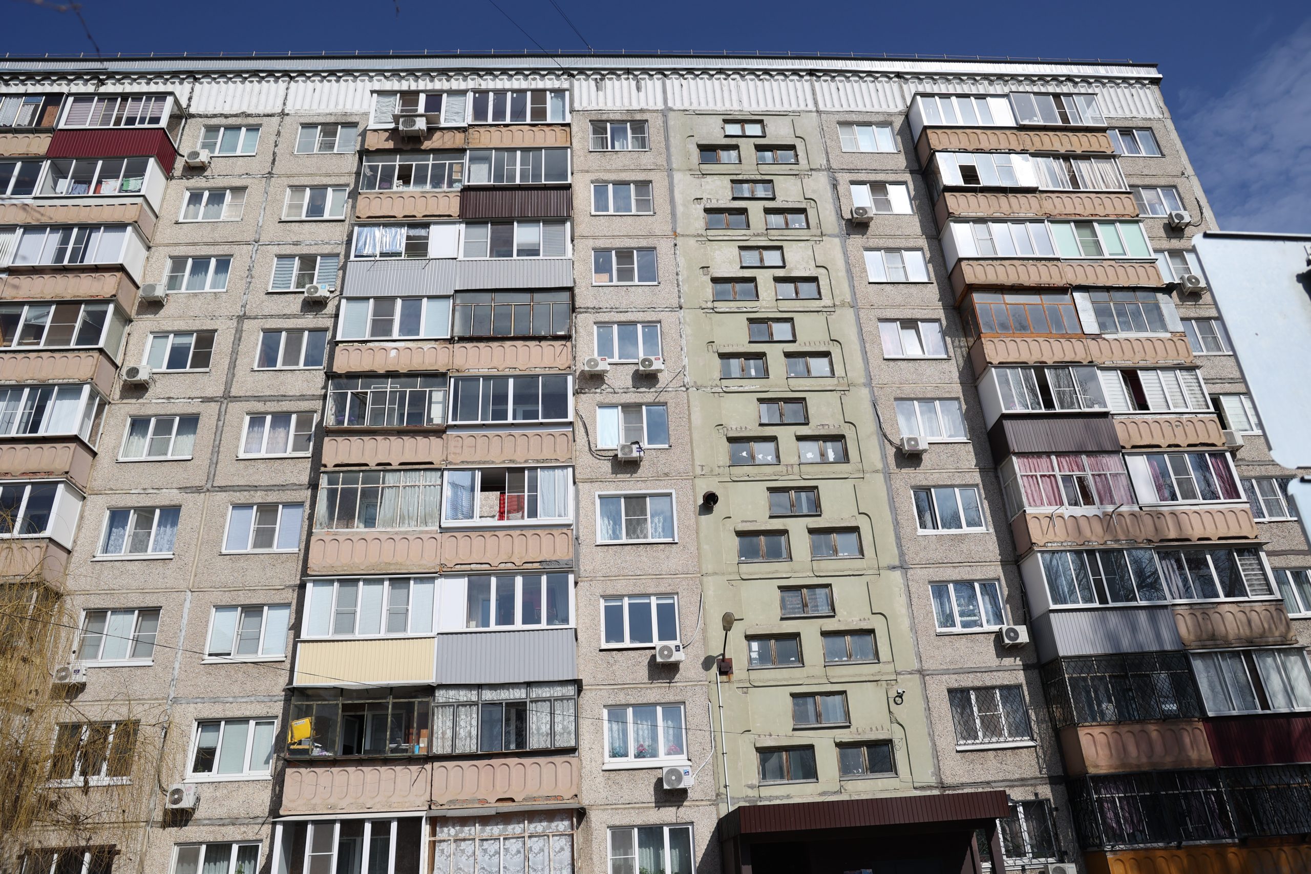 Перед нами главный виновник активности Татьяны — девятиэтажный одноподъездный панельный дом: ещё крепкий, но с изрядно изношенным фасадом. Только кровлю успели обновить и подготовить входную группу к дальнейшему преображению.